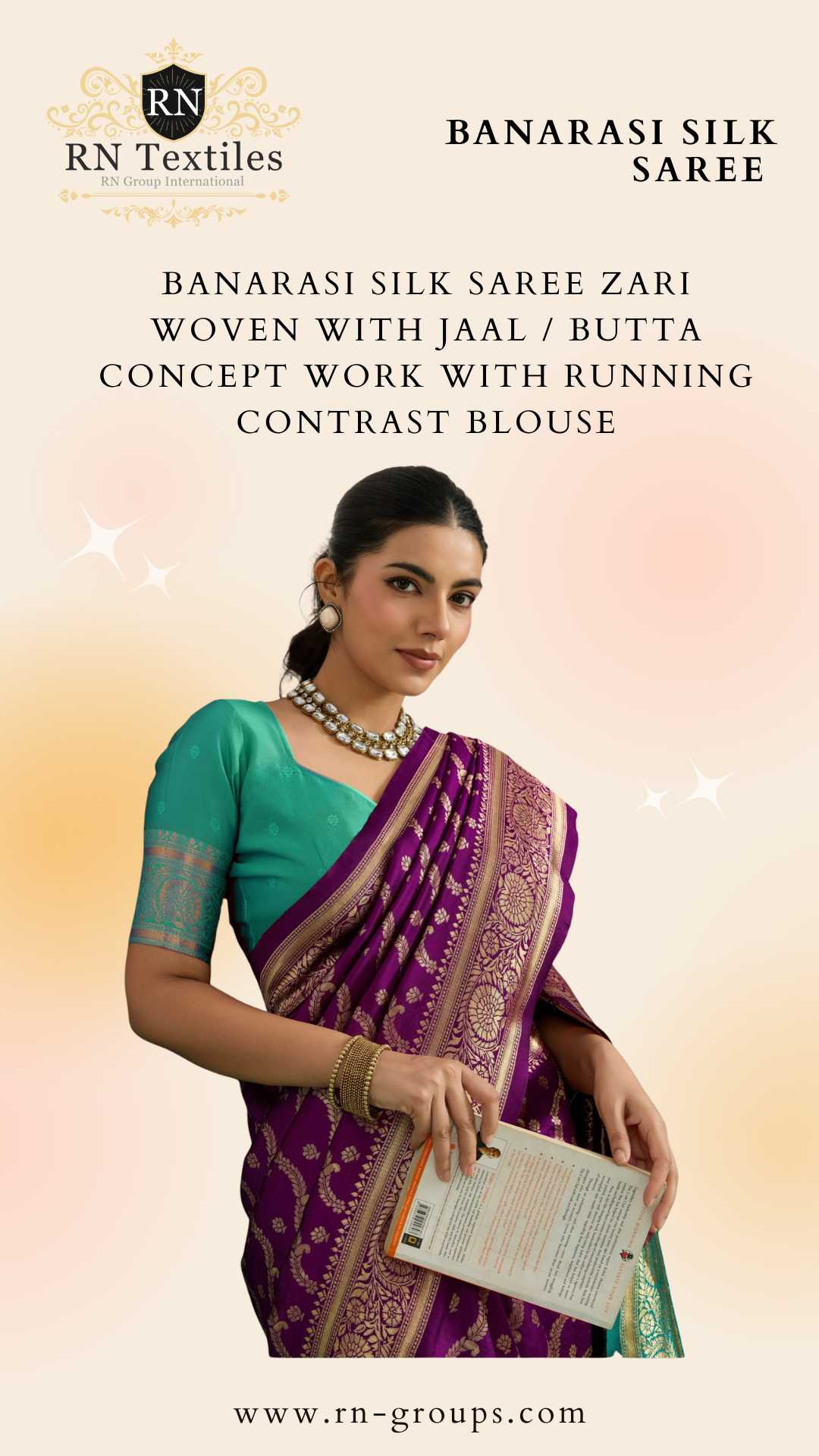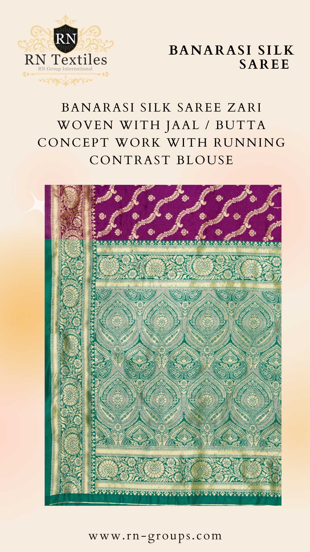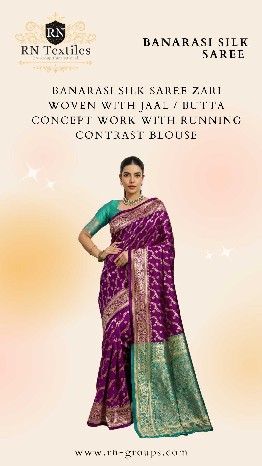 Banarasi Silk Saree Zari Woven With Jaal / Butta Concept Work With Running Contrast Blouse