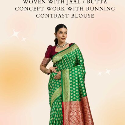 Banarasi Silk Saree With , Contrast Blouse & Rich Pallu