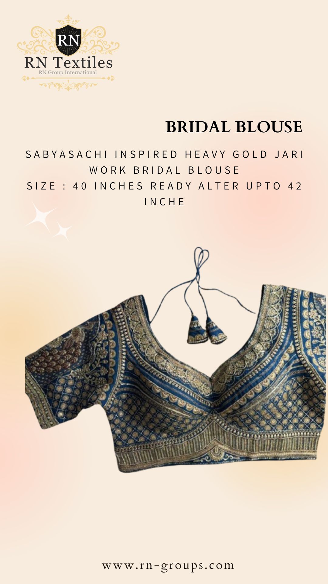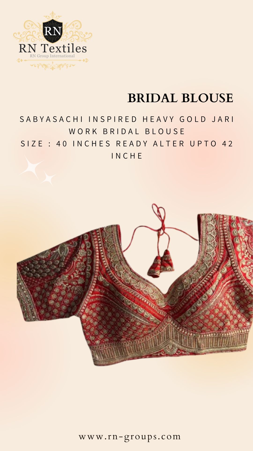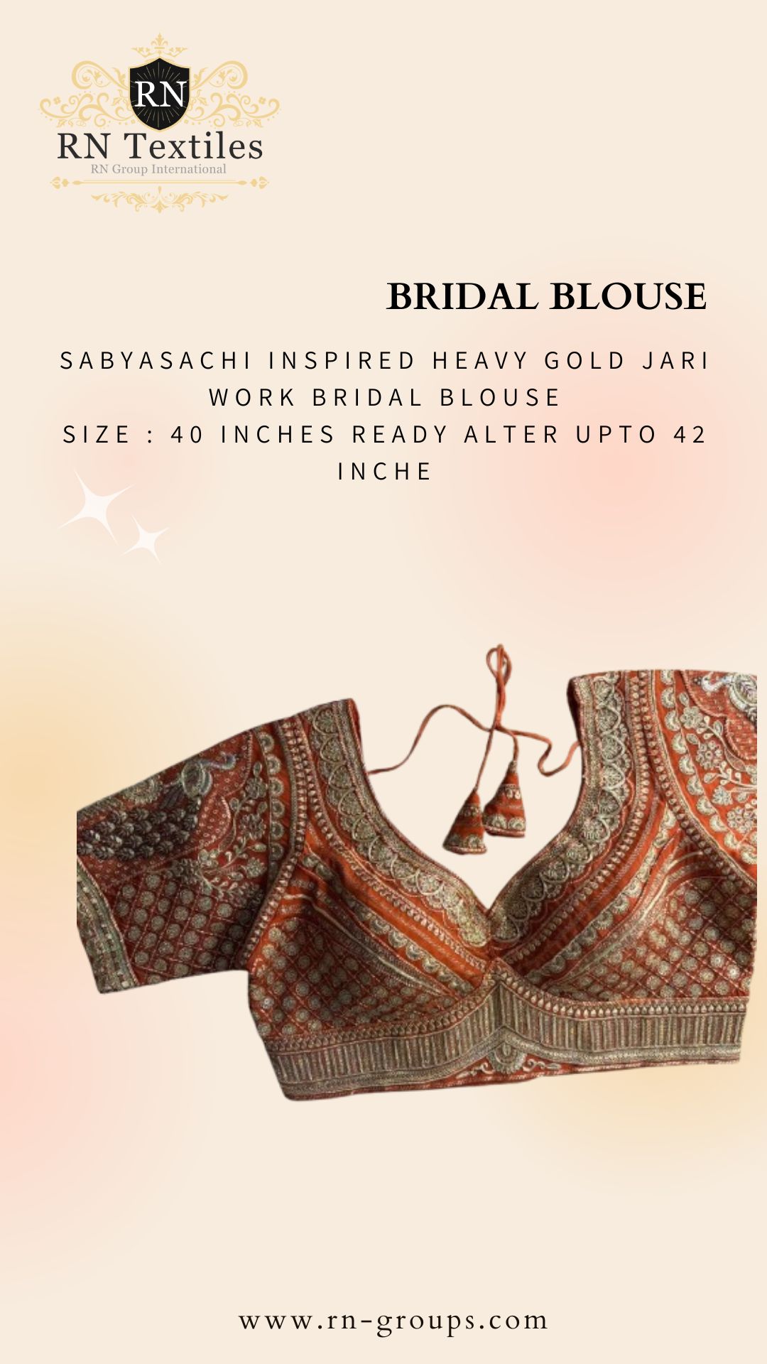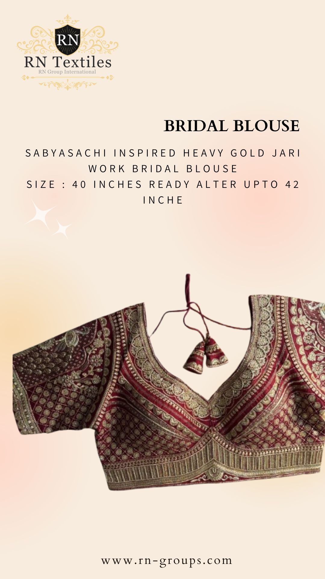 Sabyasachi Inspired Heavy Gold Jari Work Bridal Blouse