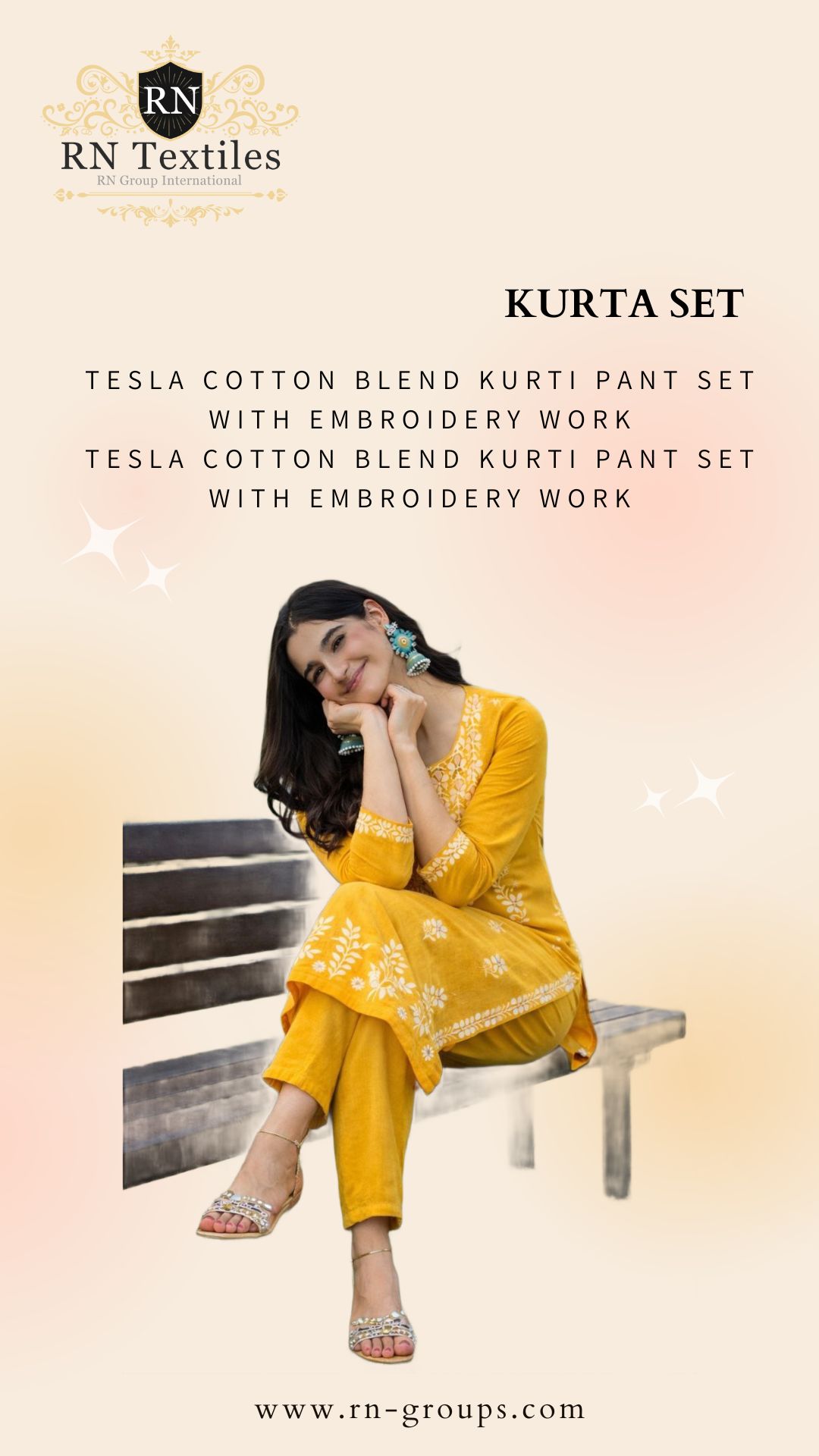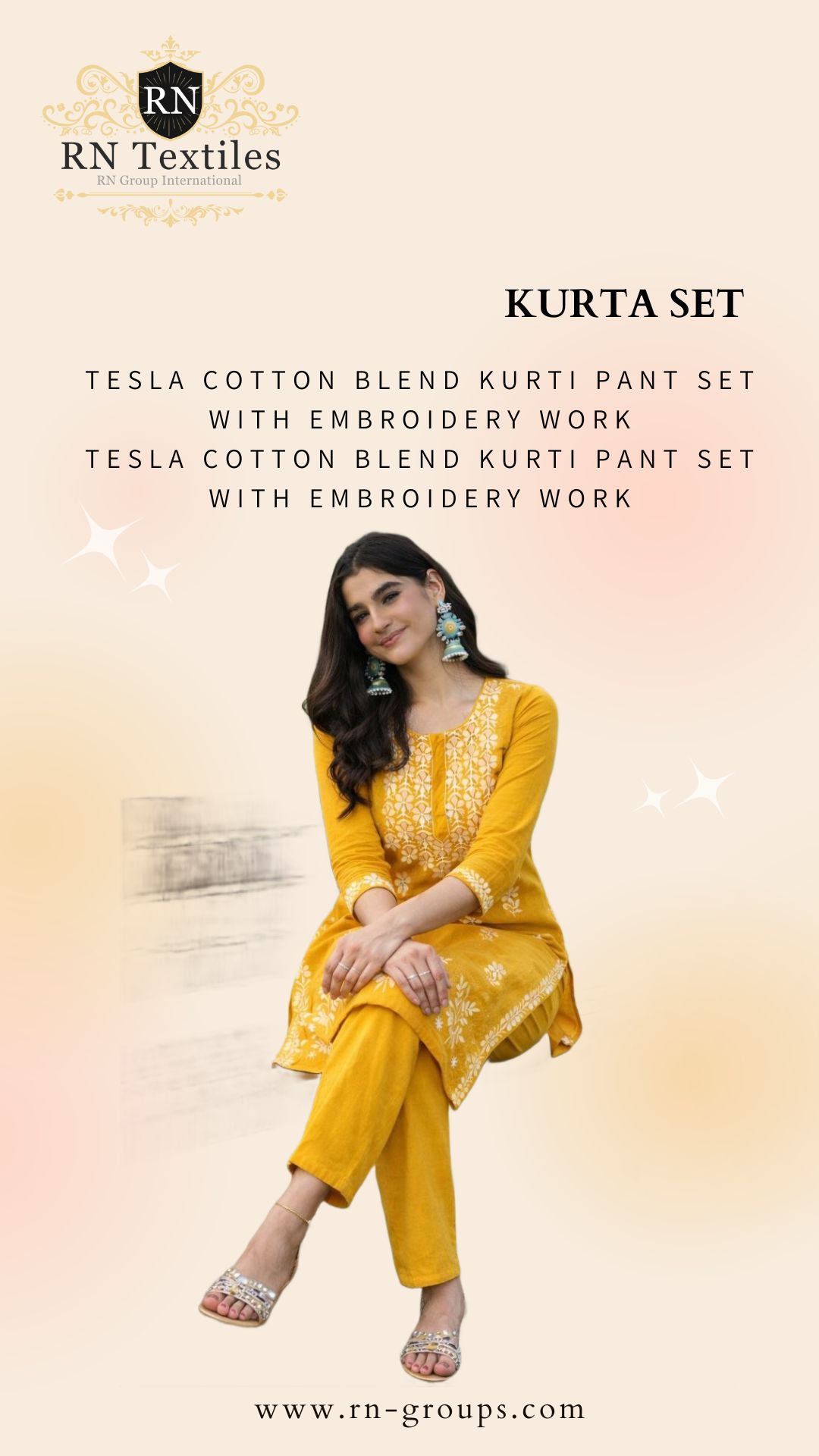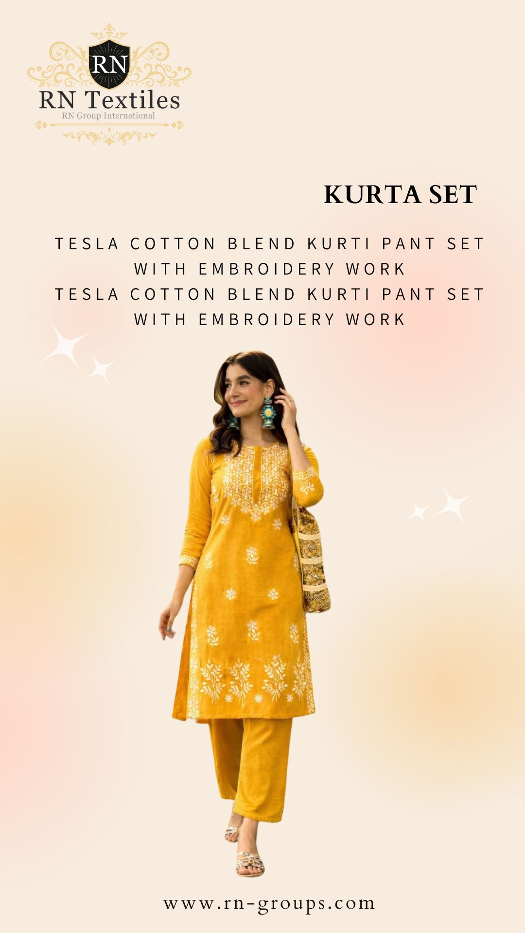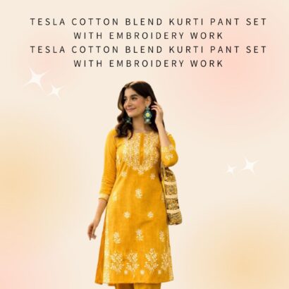 Pant :tesla cotton blend kurti pant set with embroidery work
