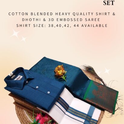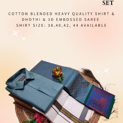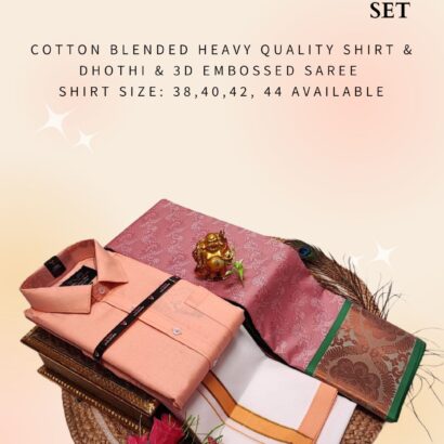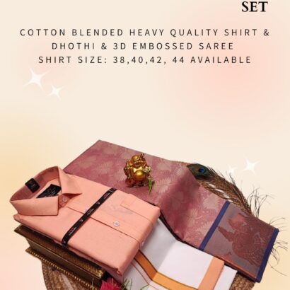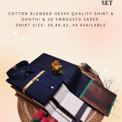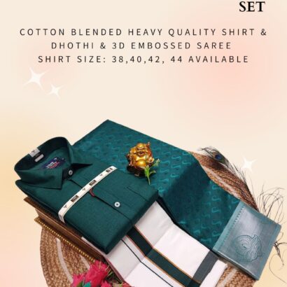 Cotton Blended Heavy Quality Shirt & Dhothi & 3d Embossed Saree