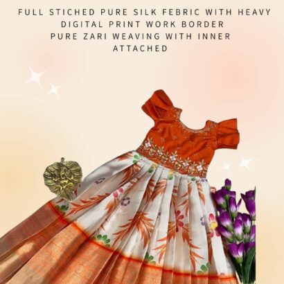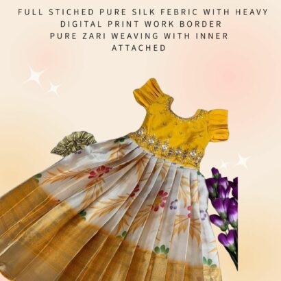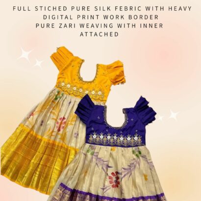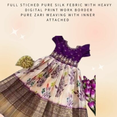 Full stiched pure silk febric with heavy digital print work border pure zari weaving with inner attached *canvas* finish and top heavy handwork
