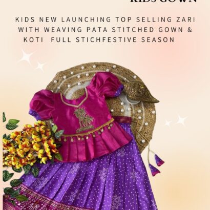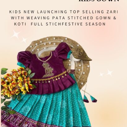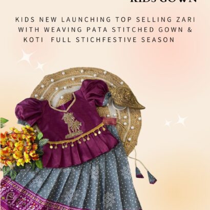 Kids New Launching Top Selling Zari With Weaving Pata Stitched Gown & Koti Full Stichfestive Season