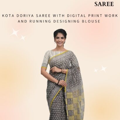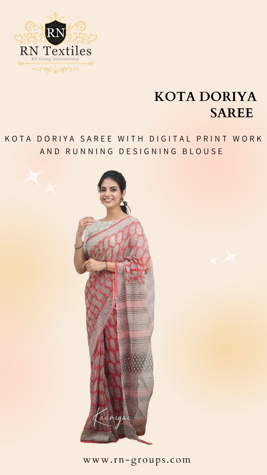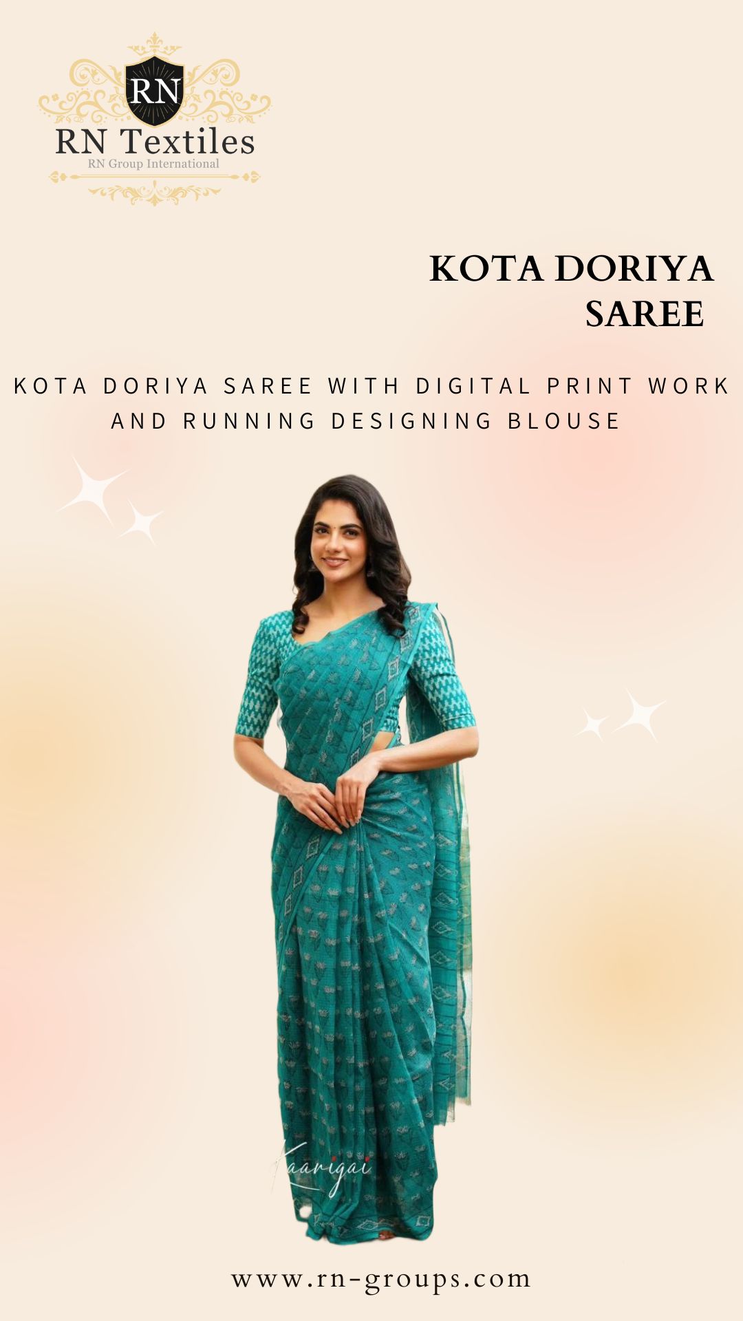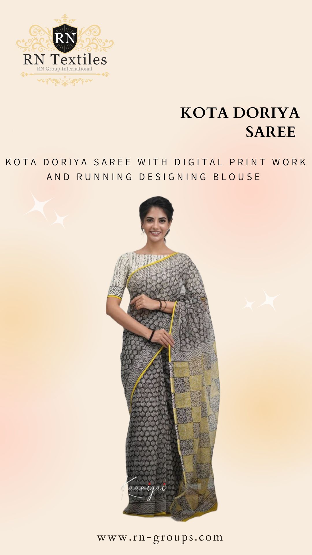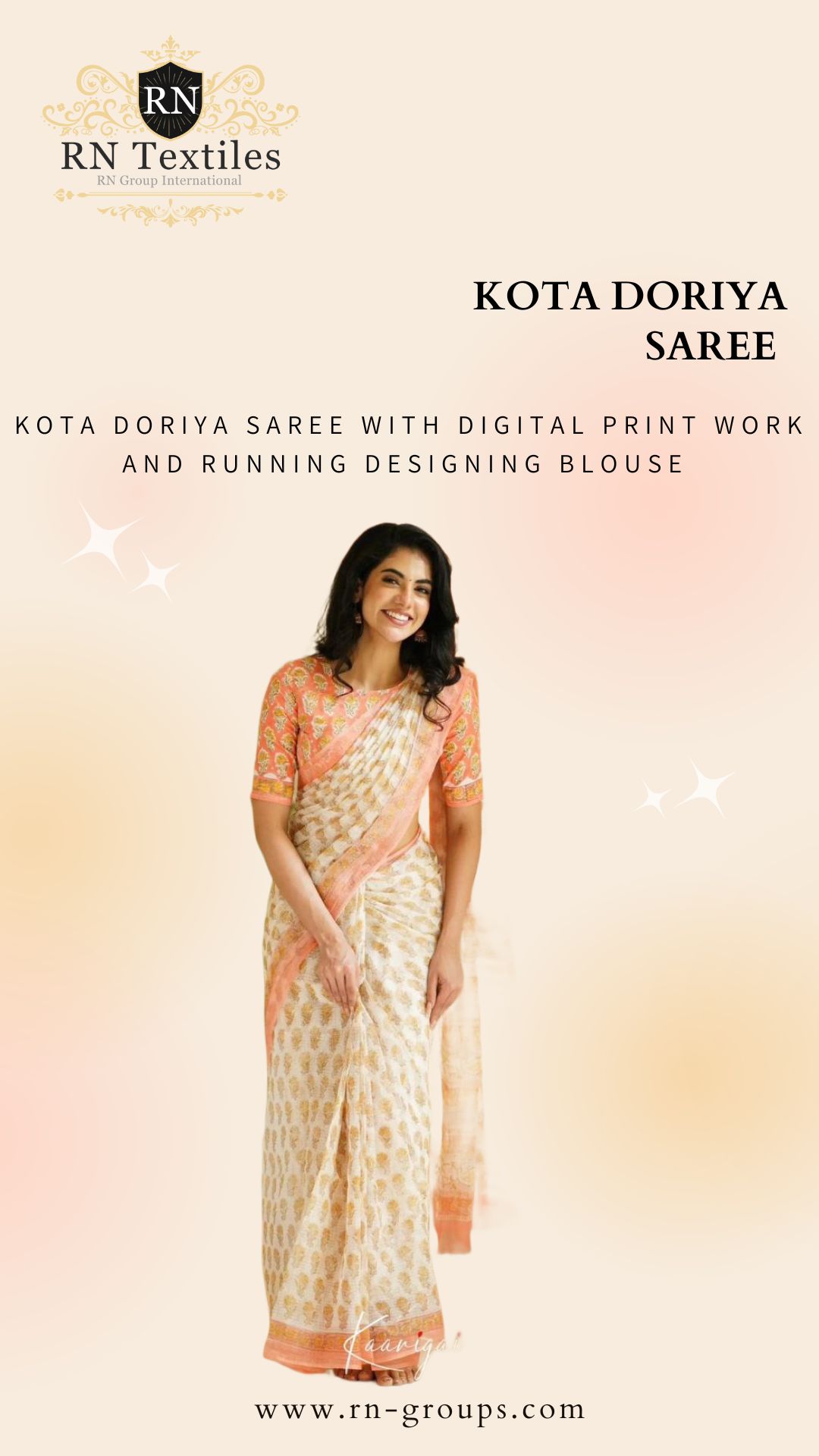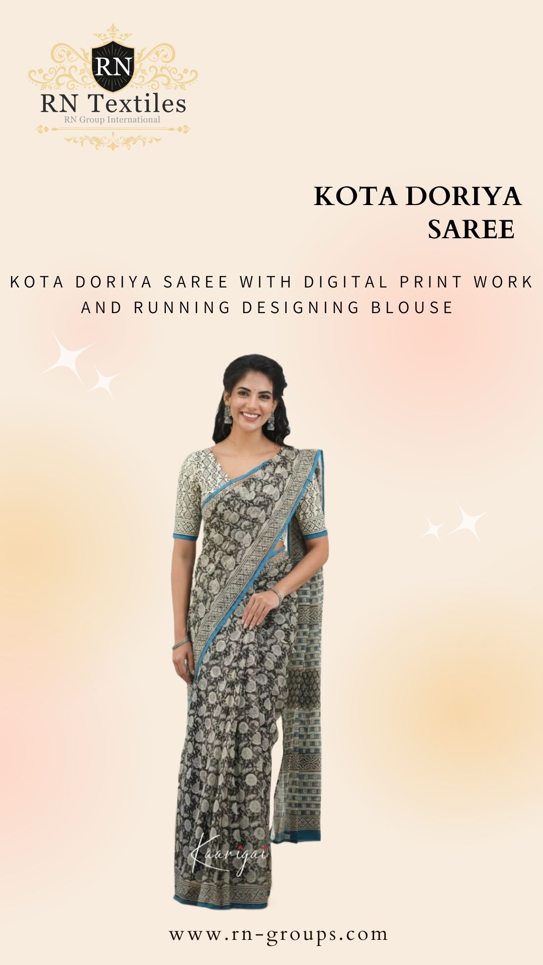 Kota Doriya Saree With Digital Print Work And Running Designing Blouse