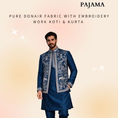 Koti Fabric : Pure Donair Fabric With Embroidery Work