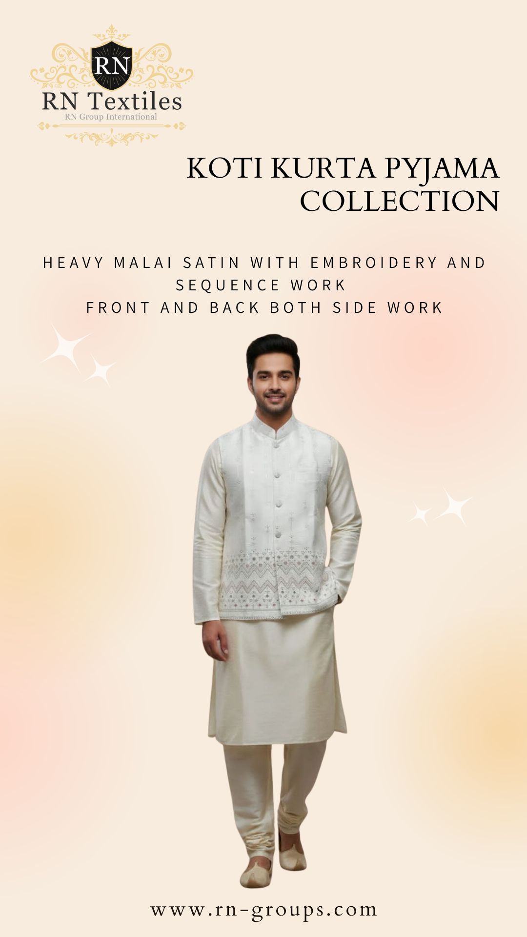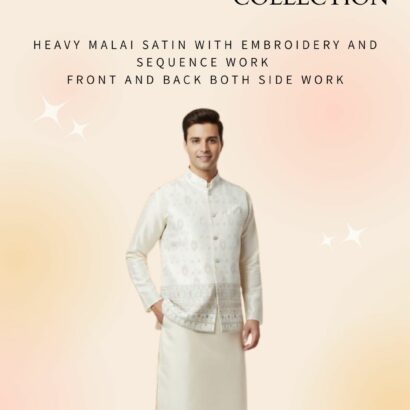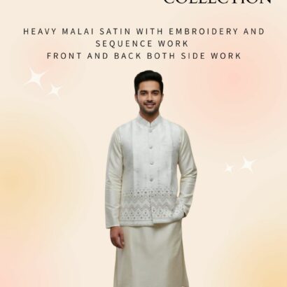 Heavy malai satin with embroidery and sequence work Front and back both side work with heavy silk pyjama