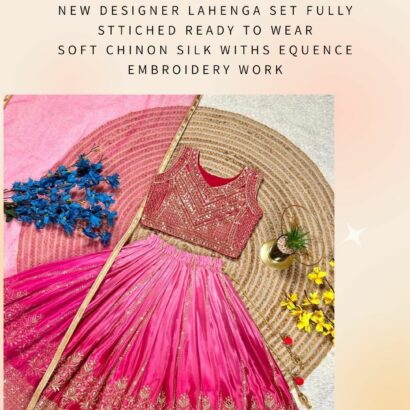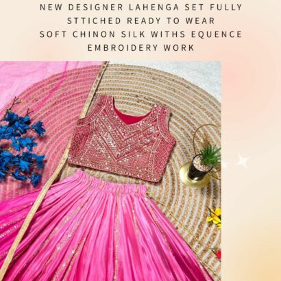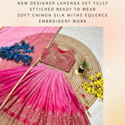 Soft chinon silk siqwans embroidery work & print work lehengaand blouse