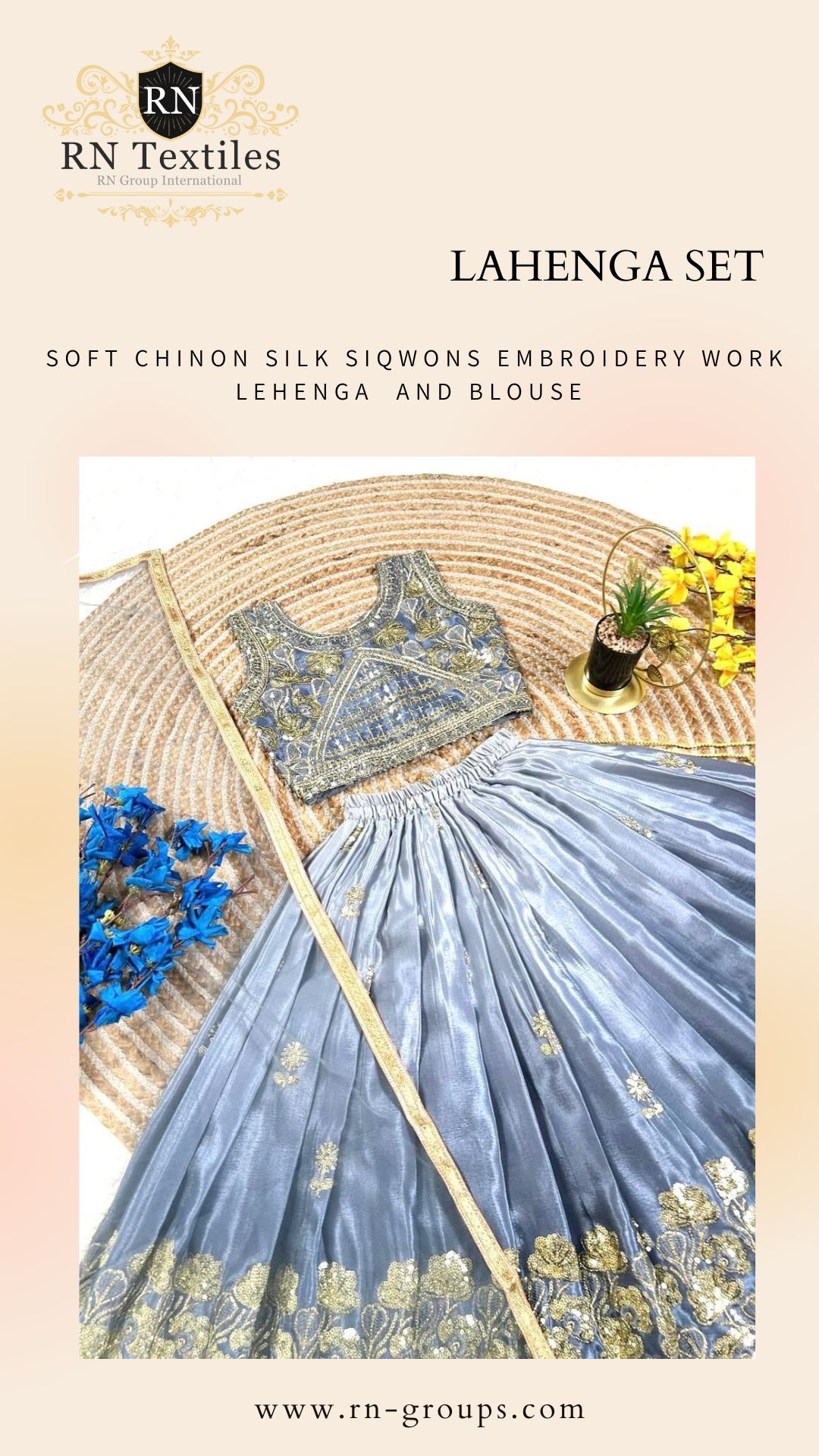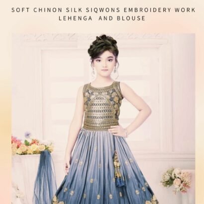Soft chinon silk siqwans embroidery work lehenga and blouse