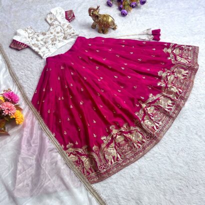 Lahenga Fabric : Soft Chinnon With Elephant Embroidery Work & Heavy Zari Embroidery Work On Daman