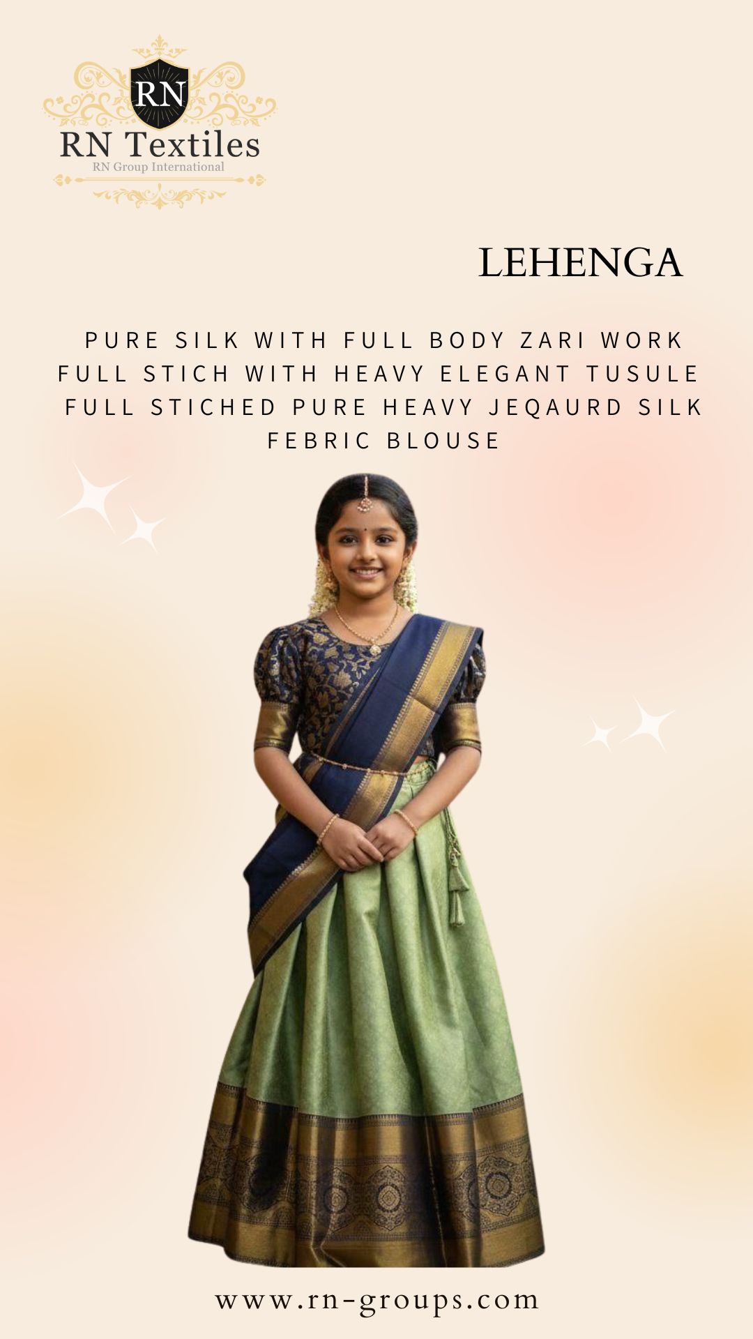 Pure silk with full body zari work full stich with heavy elegant tusule lehenga