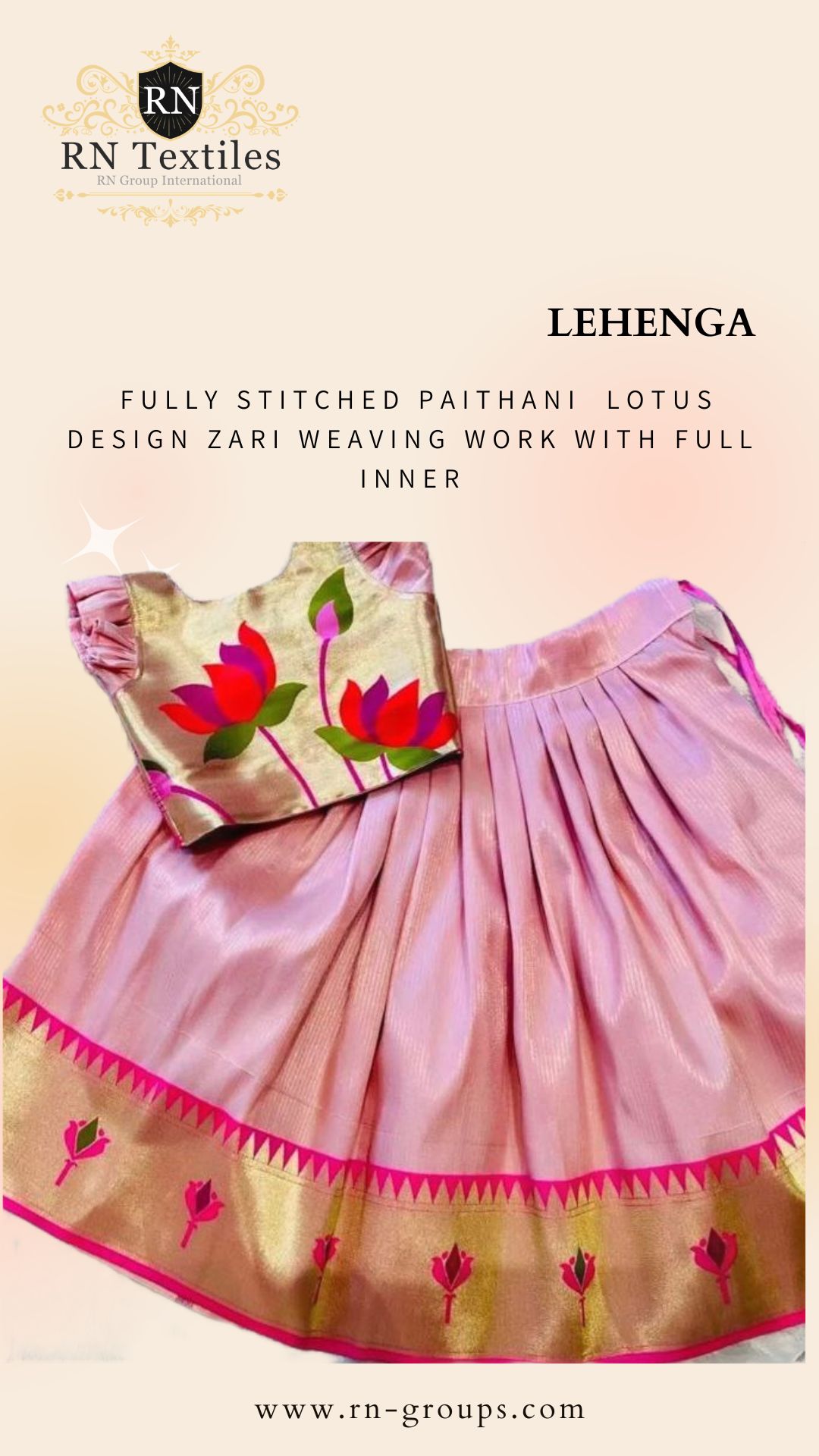 Lehenga : Fully Stitched Paithani Lotus Design Zari Weaving Work With Full Inner
