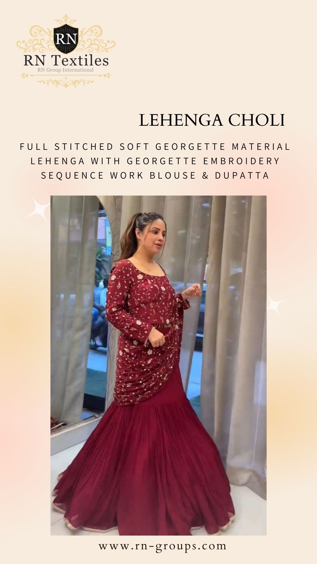 Full stitched soft georgette material lehenga with georgette embroidery sequence work blouse & dupatta