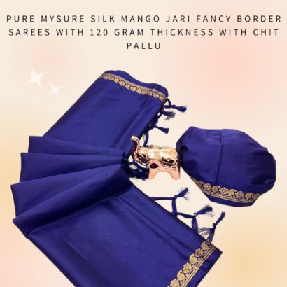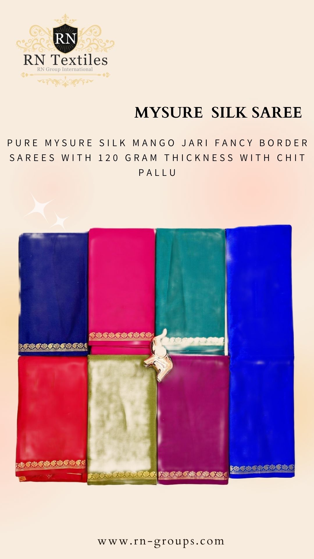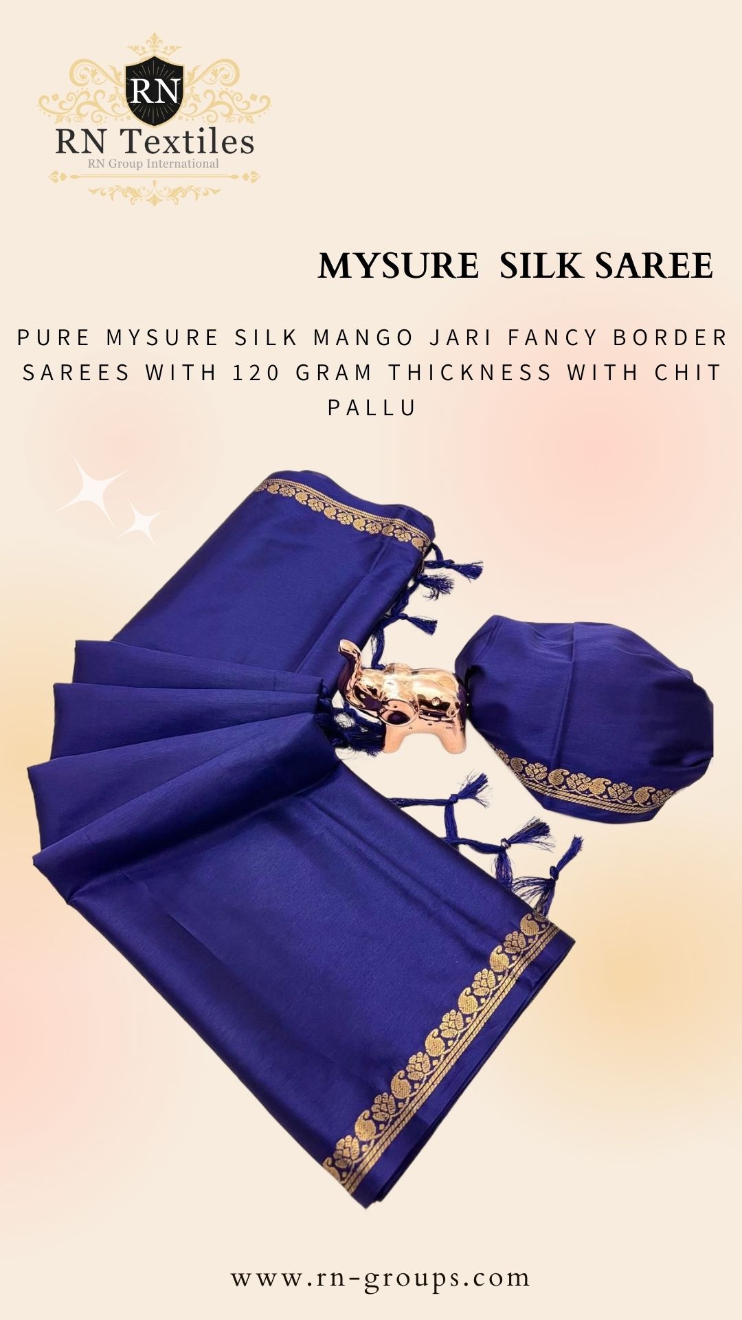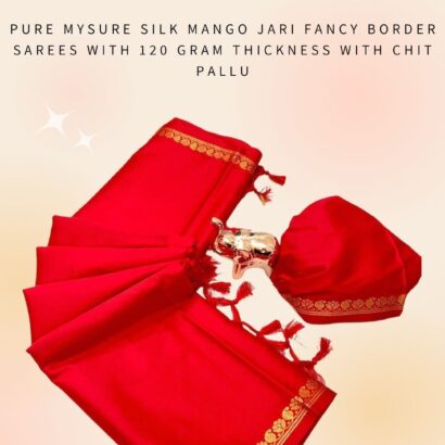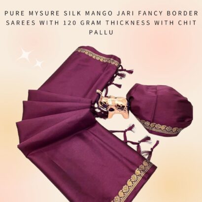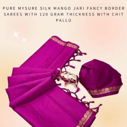Pure Mysure Silk Mango Jari Fancy Border Sarees With 120 Gram Thickness With Chit Pallu