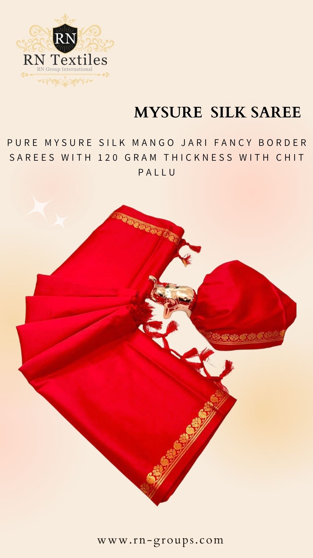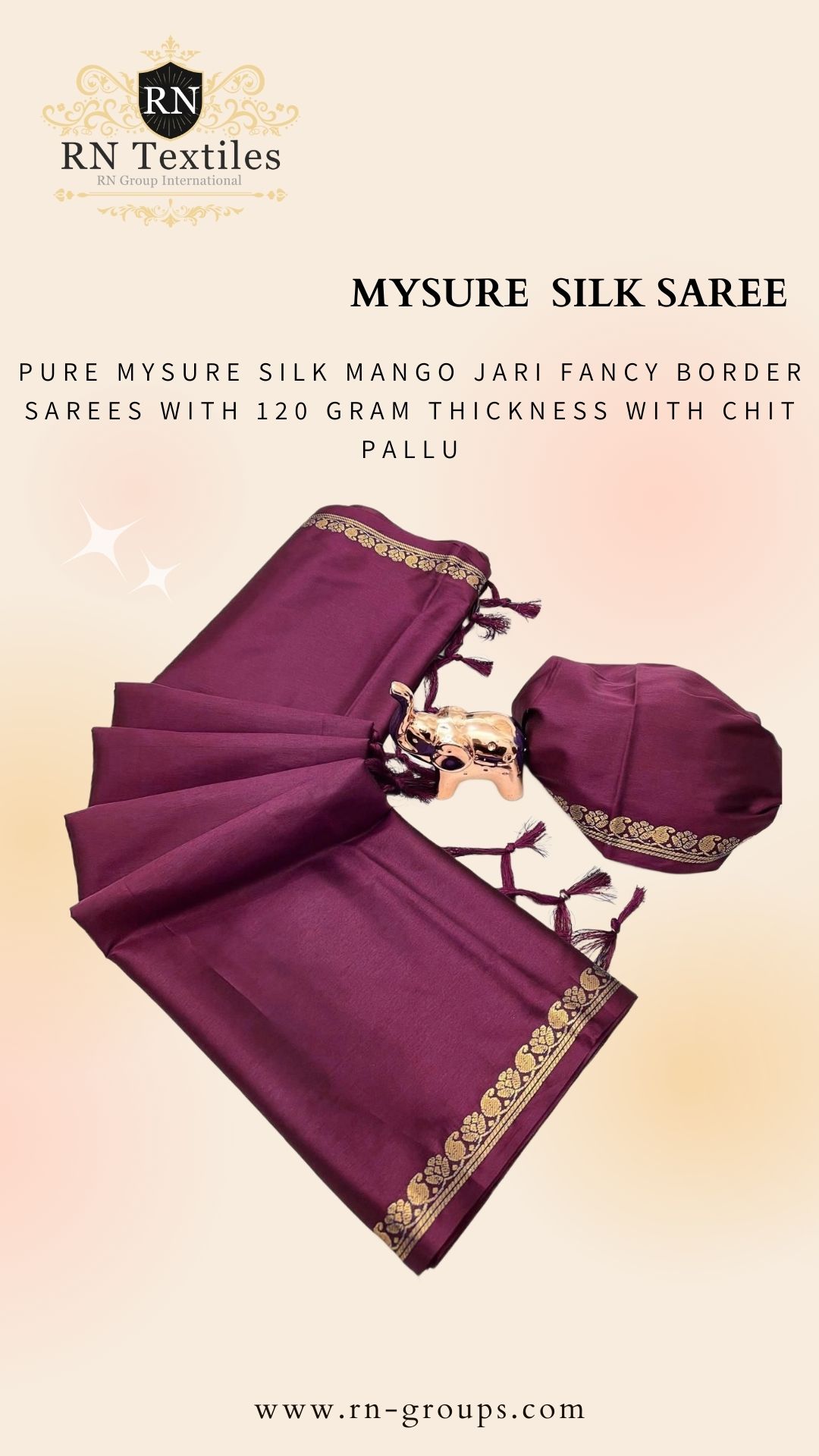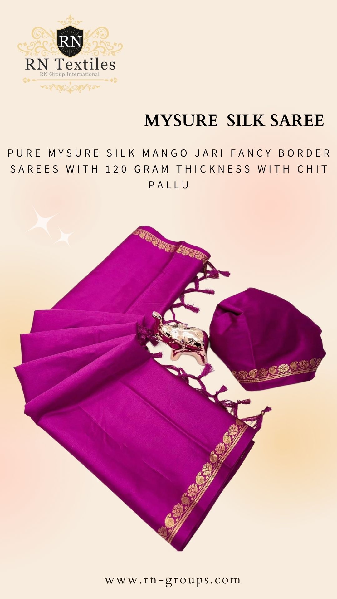 Pure Mysure Silk Mango Jari Fancy Border Sarees With 120 Gram Thickness With Chit Pallu