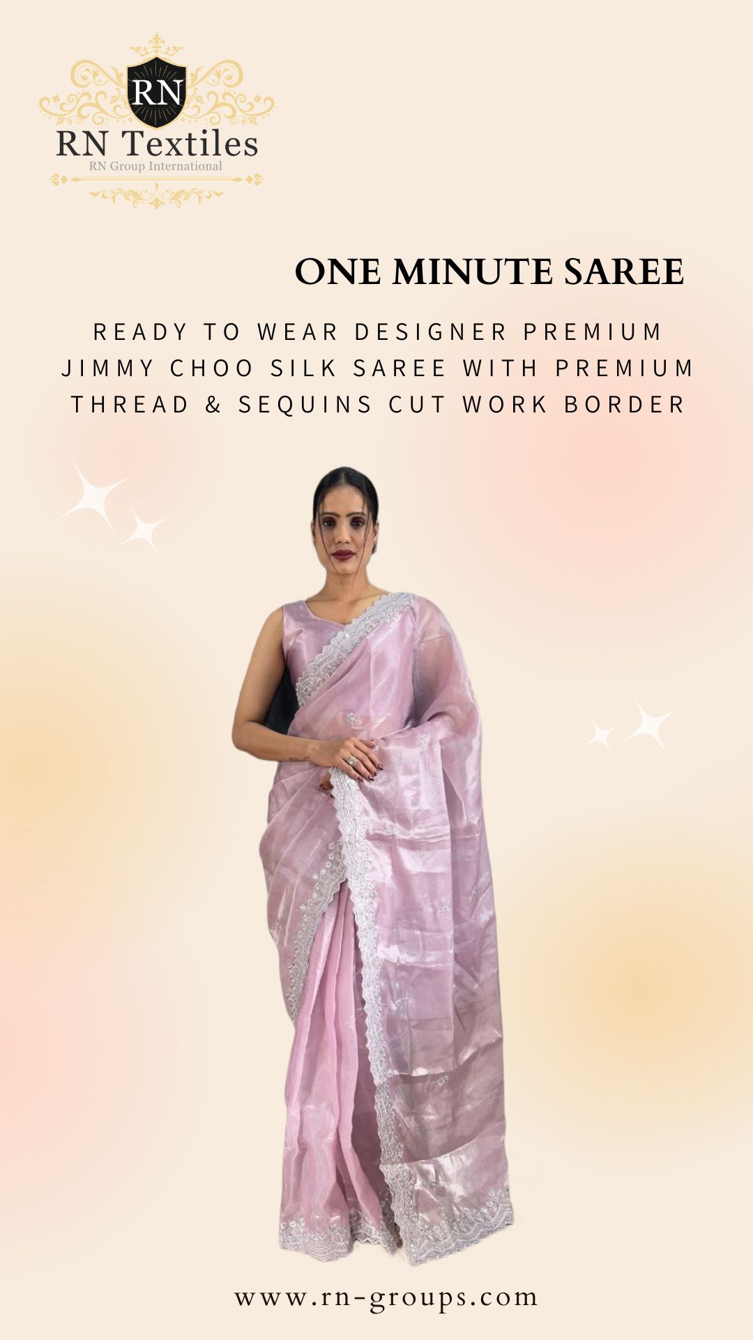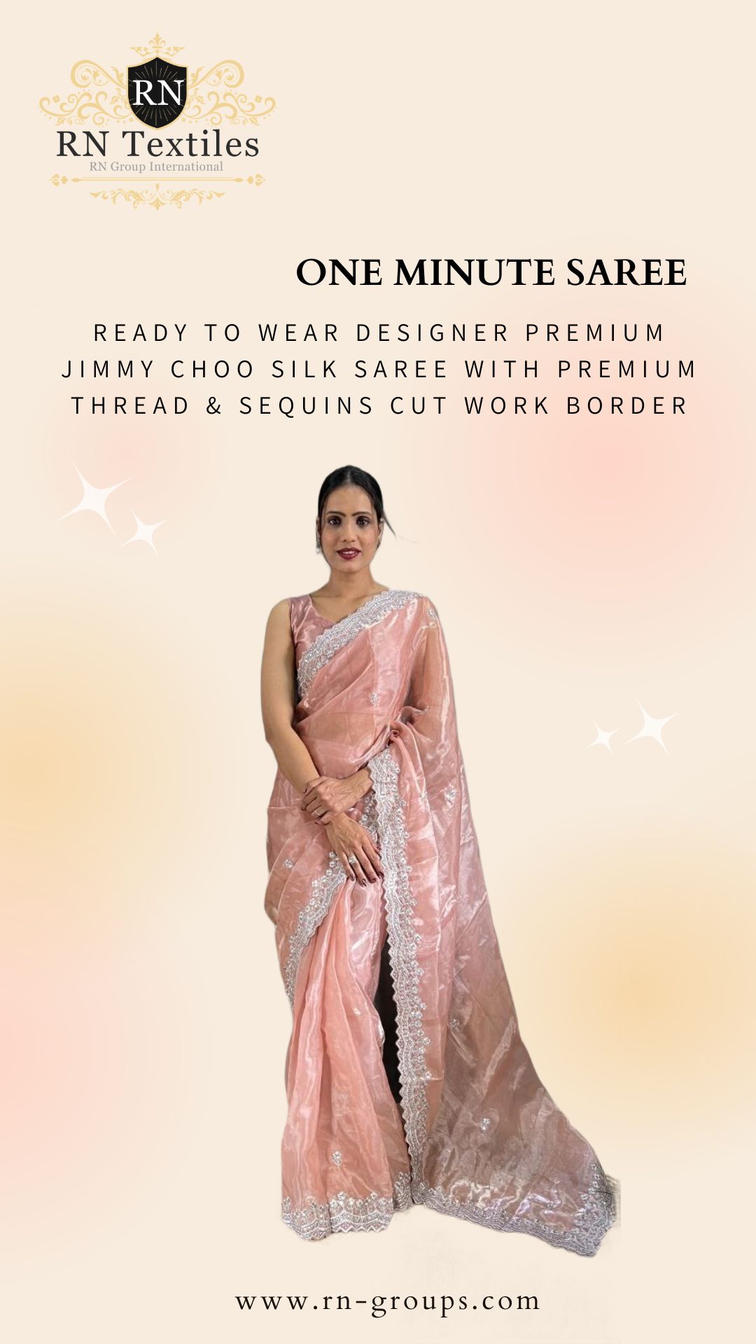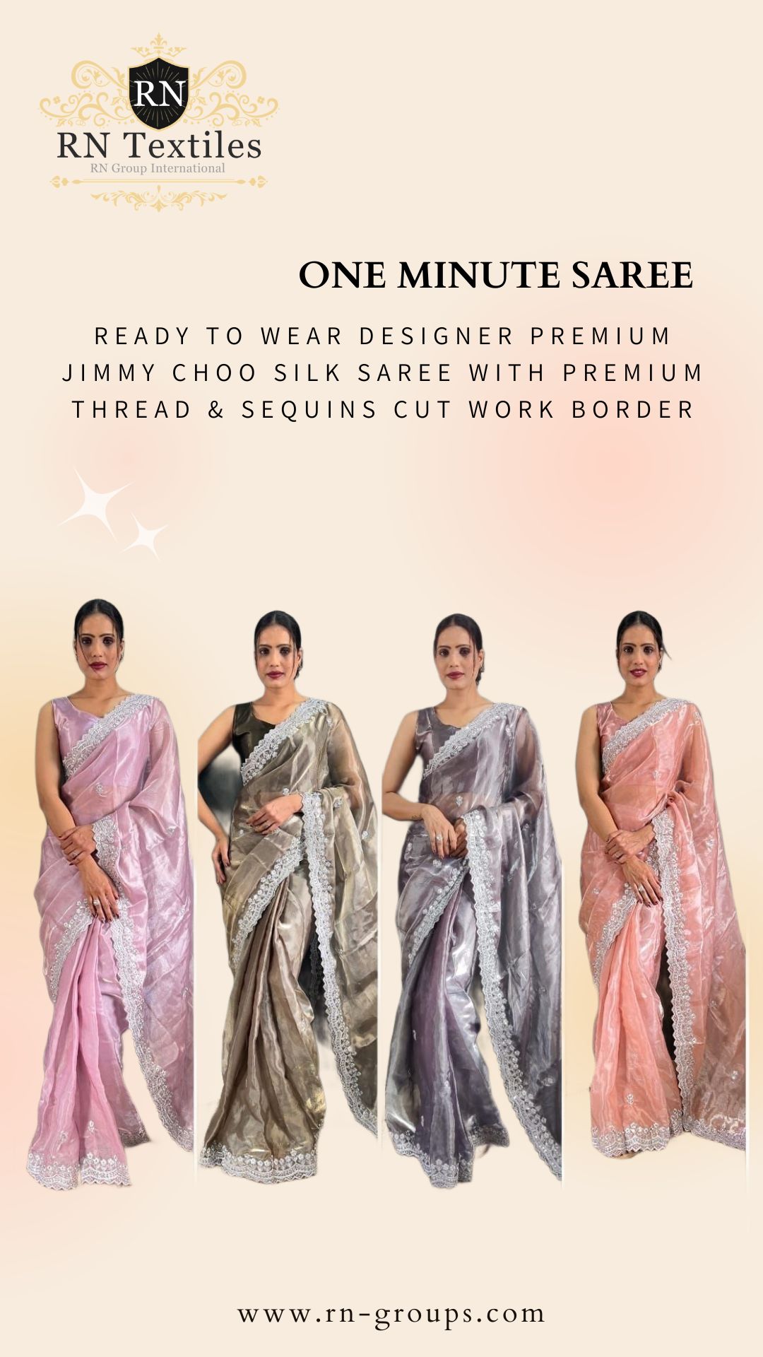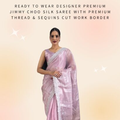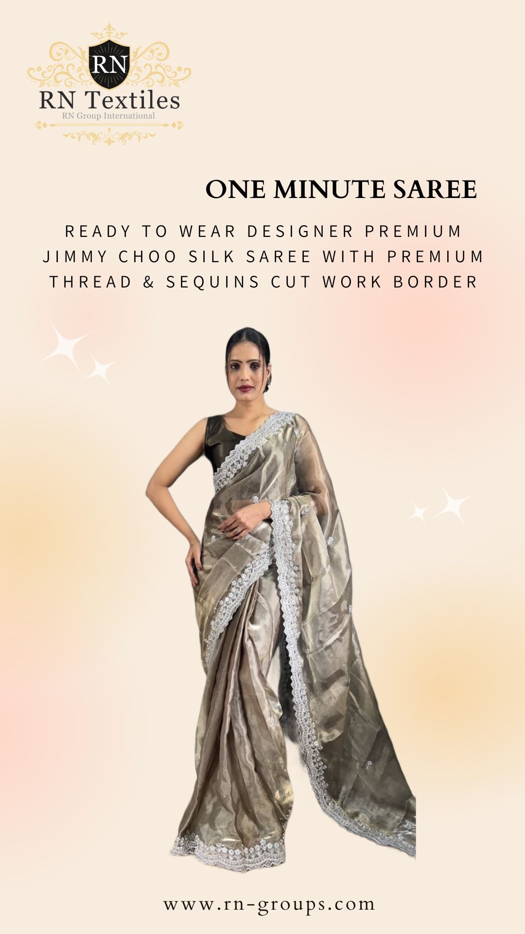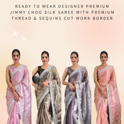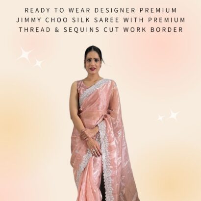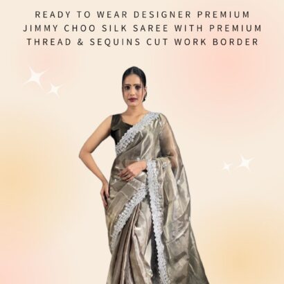 Ready To Wear Designer Premium Jimmy Choo Silk Saree With Premium Thread & Sequins Cut Work Border