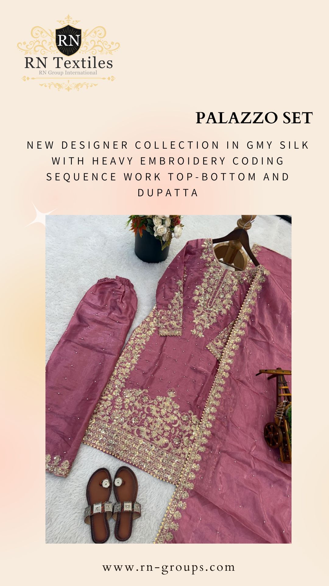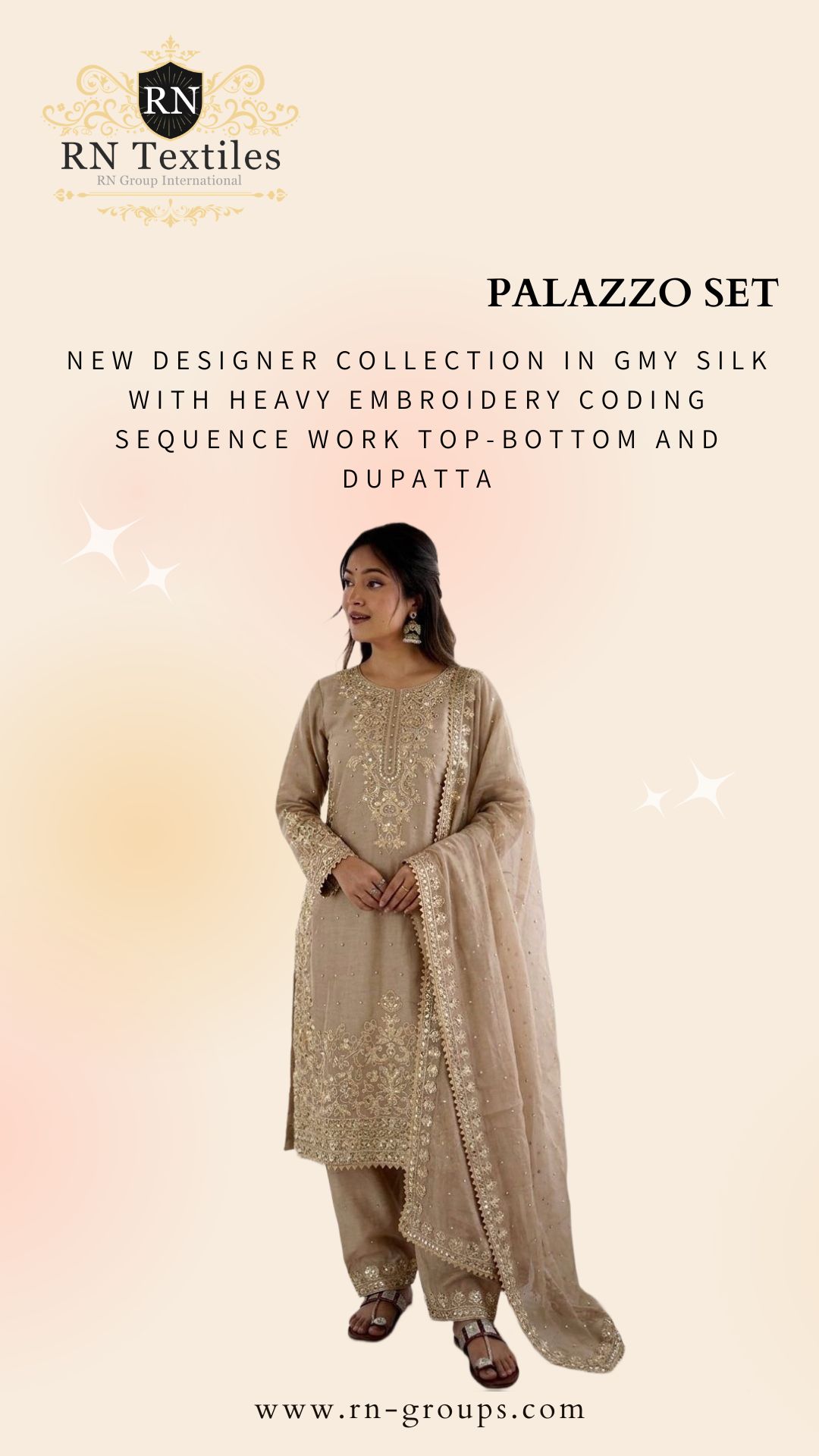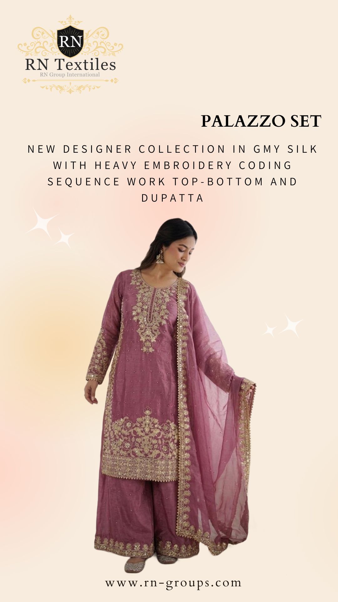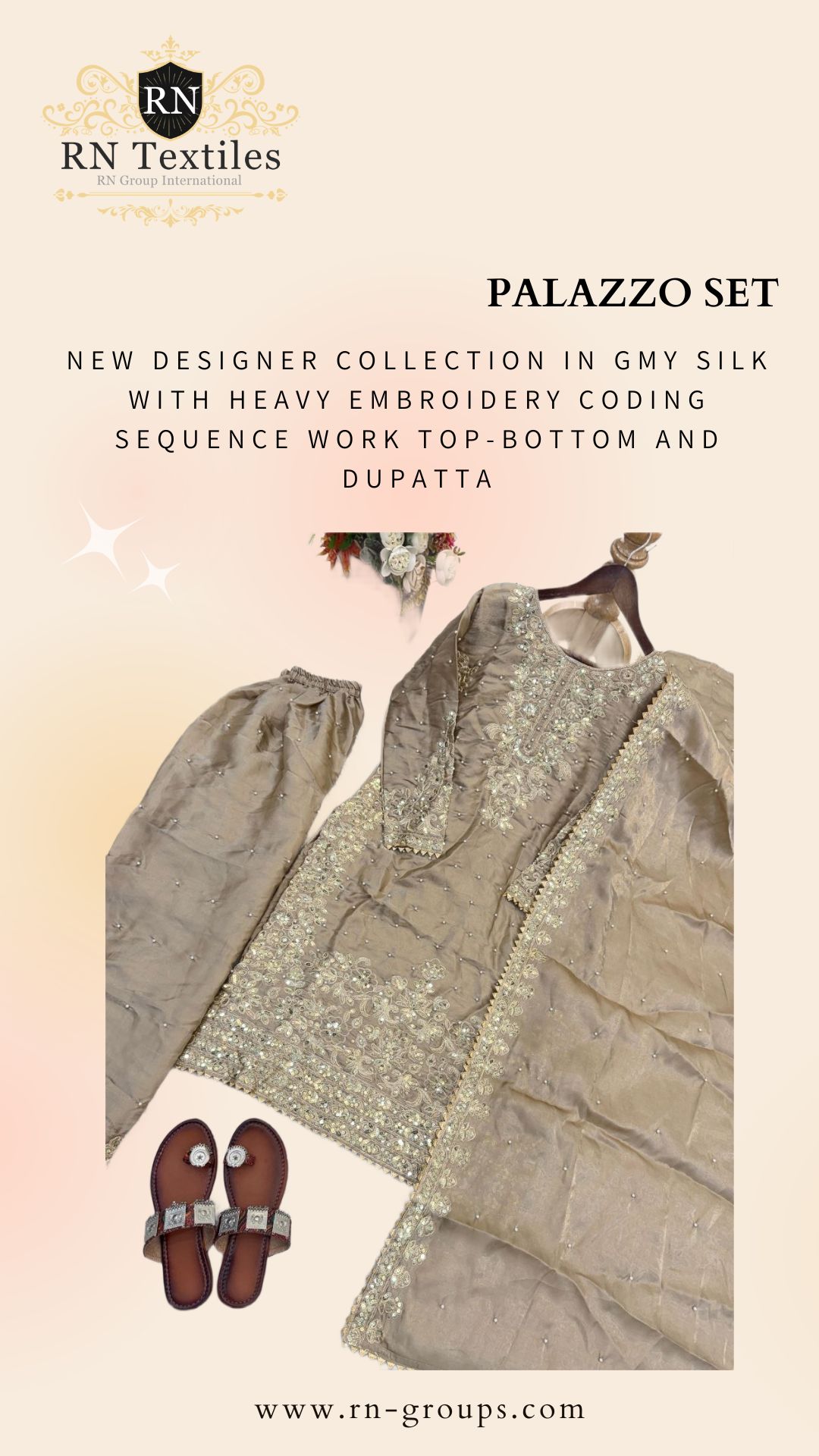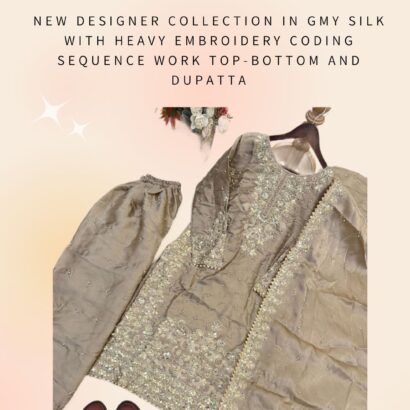 New Designer Collection In Gmy Silk With Heavy Embroidery Coding Sequence Work Top-bottom And Dupatta Set Fully Stitched Ready To Wear