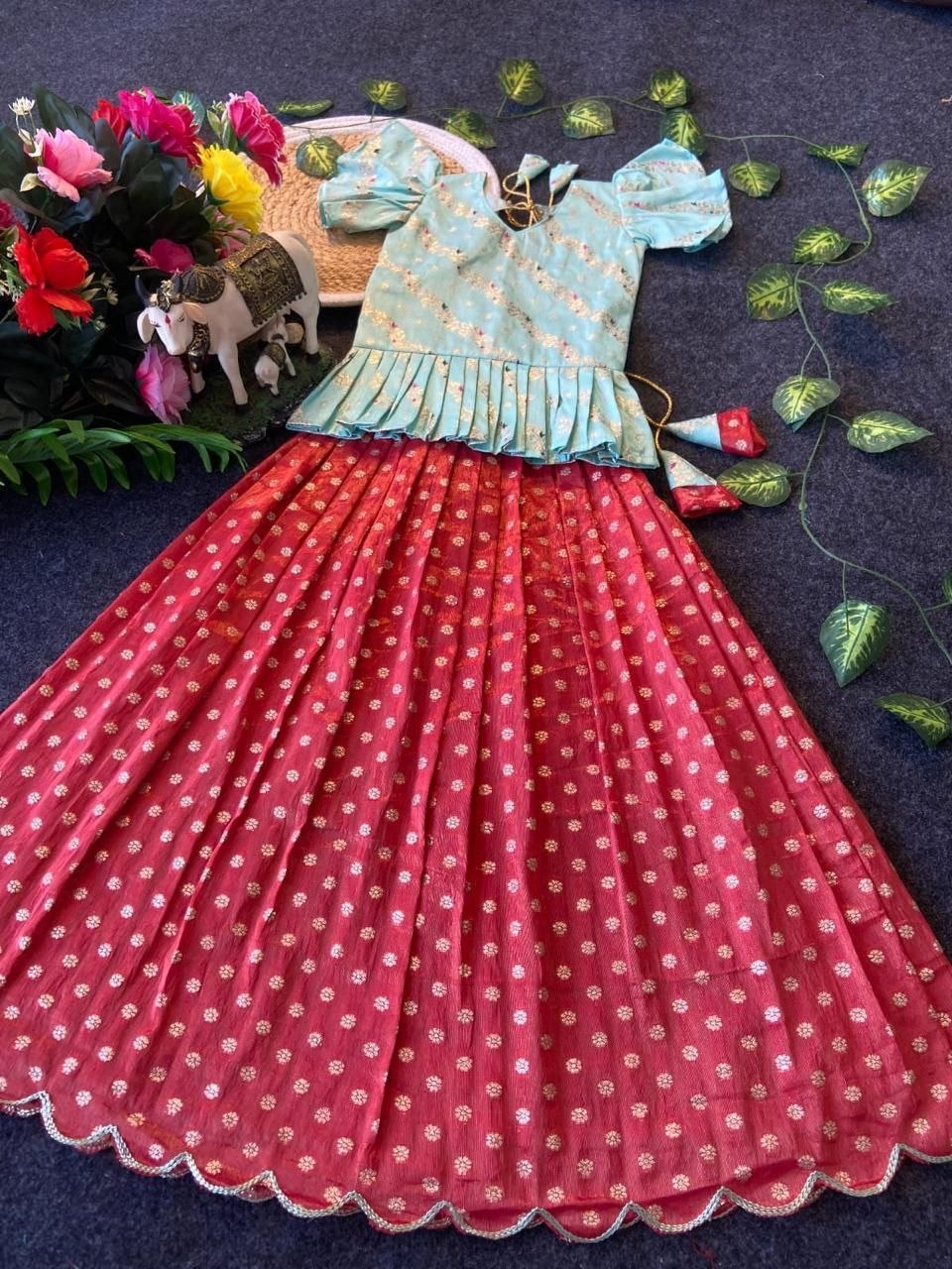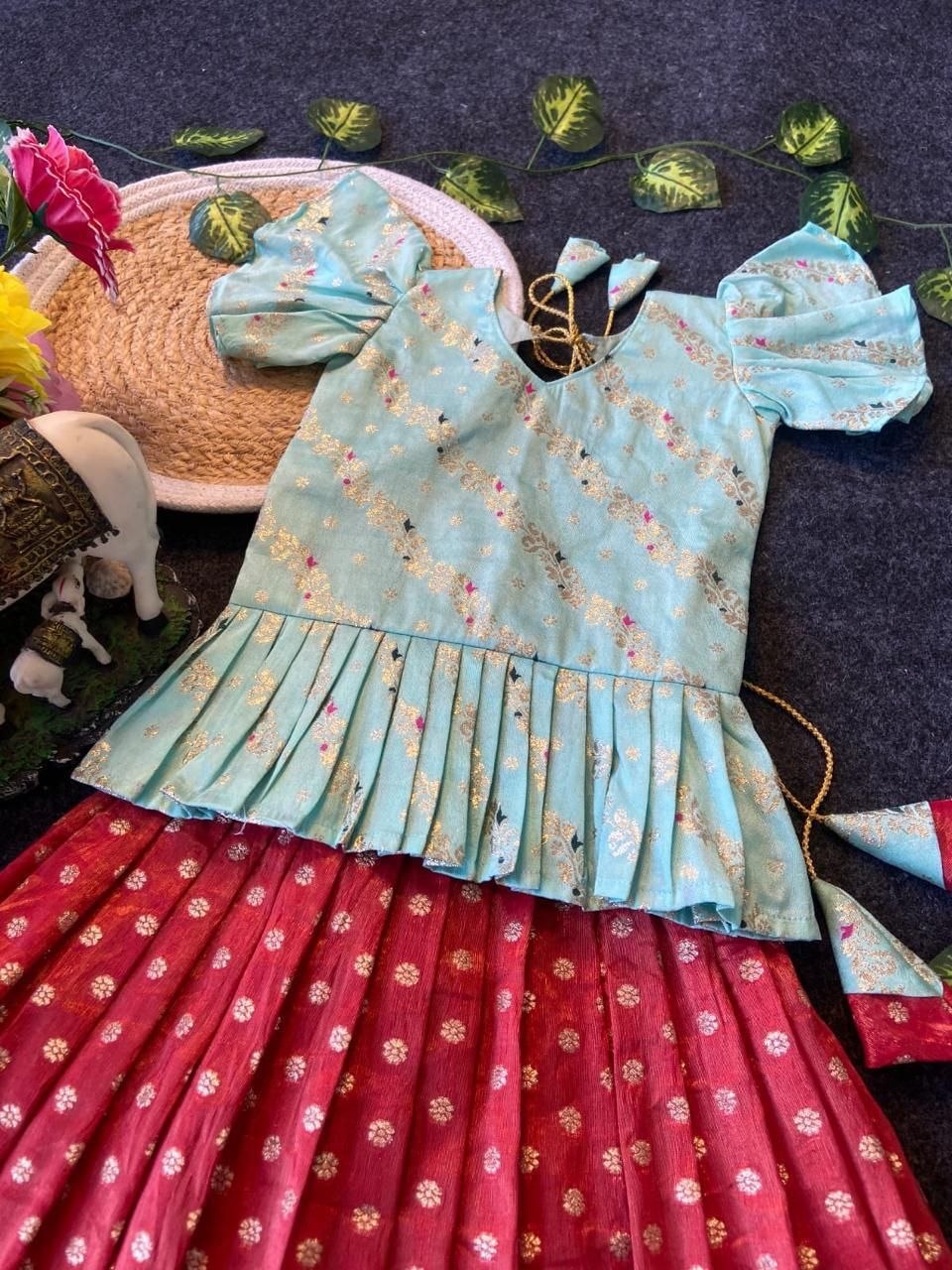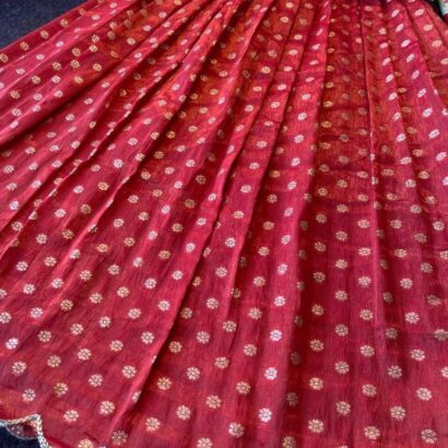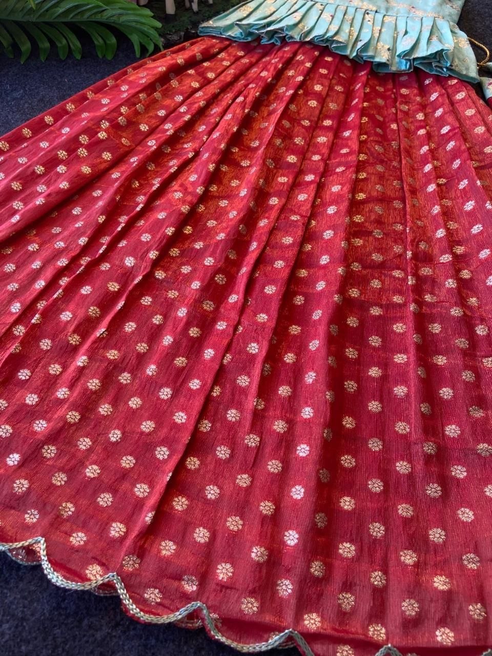 Lehenga : Heavy Pure Banarasi Tissue Silk With Aari Cut Work Border And Unique Tassels