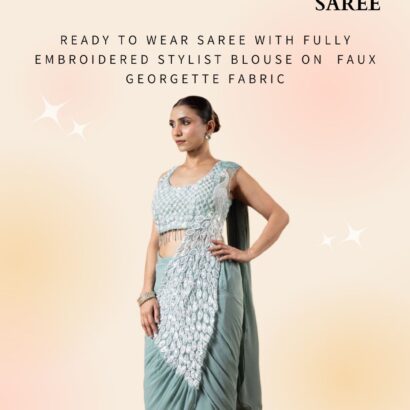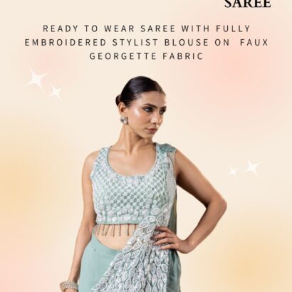 We Are Launching New Superhit Trending Ready To Wear Saree With Fully Embroidered Stylist Blouse On Faux Georgette Fabric