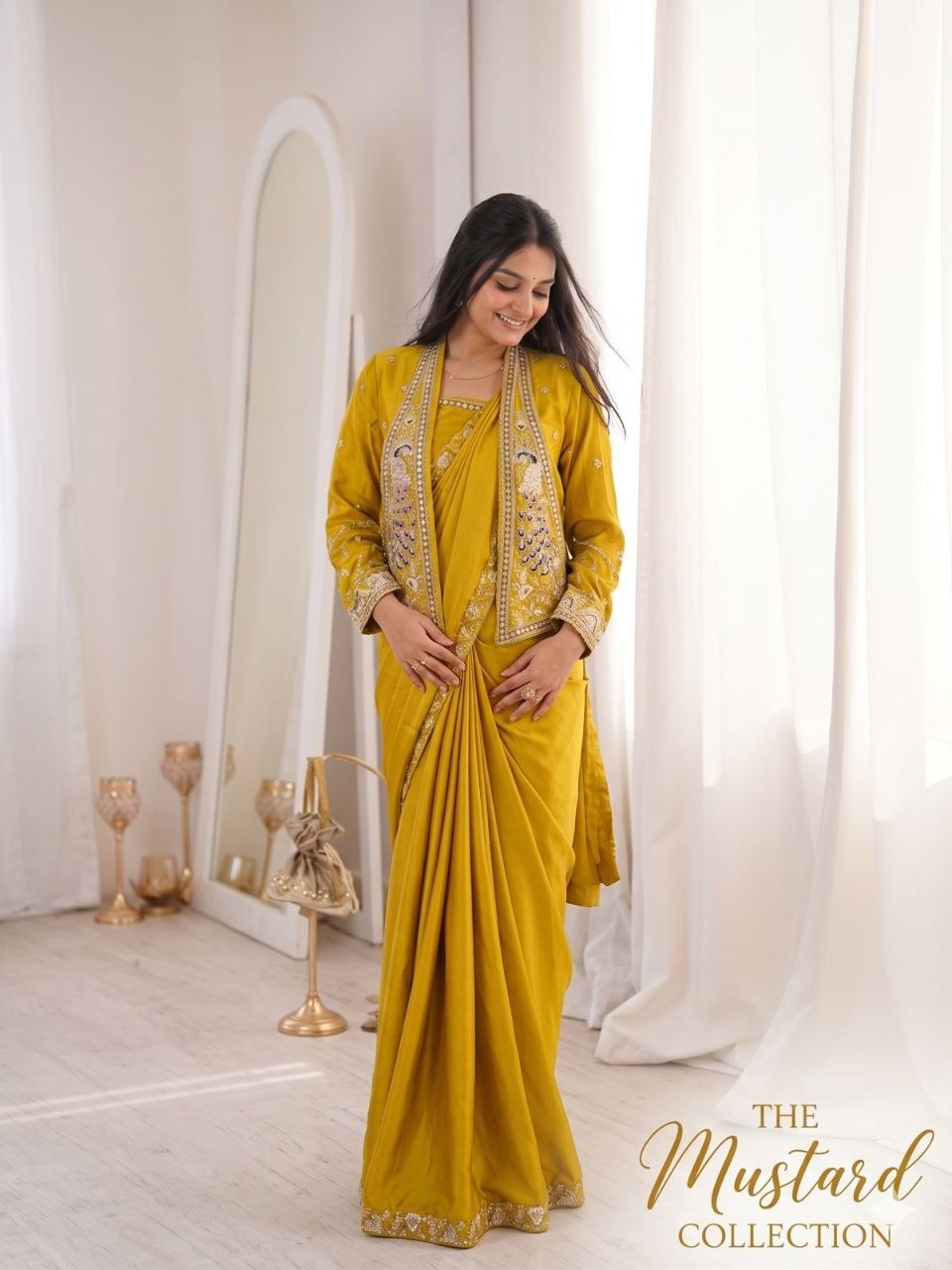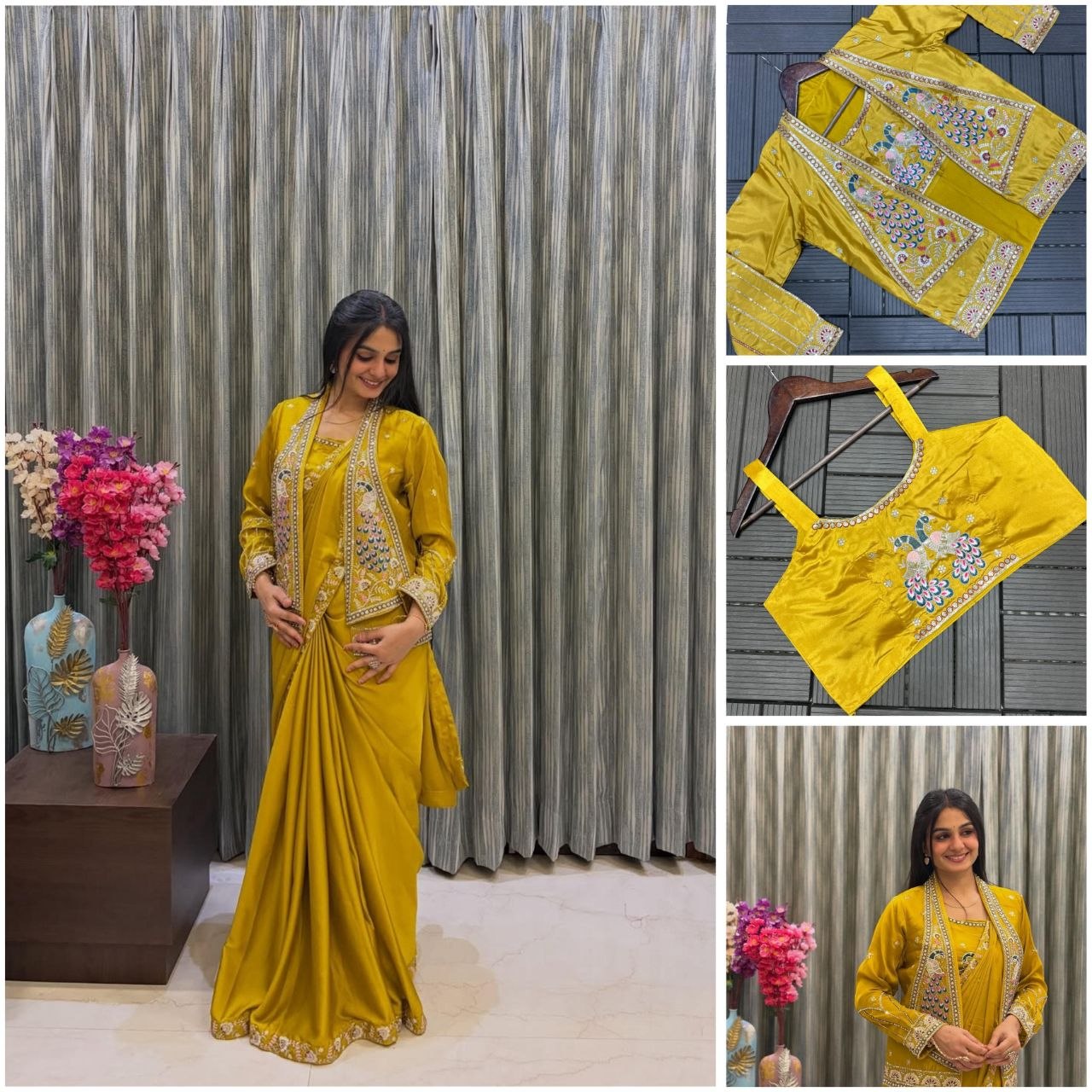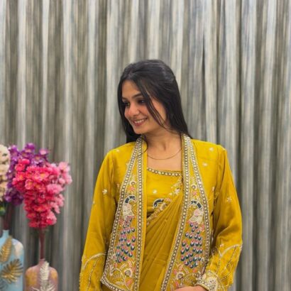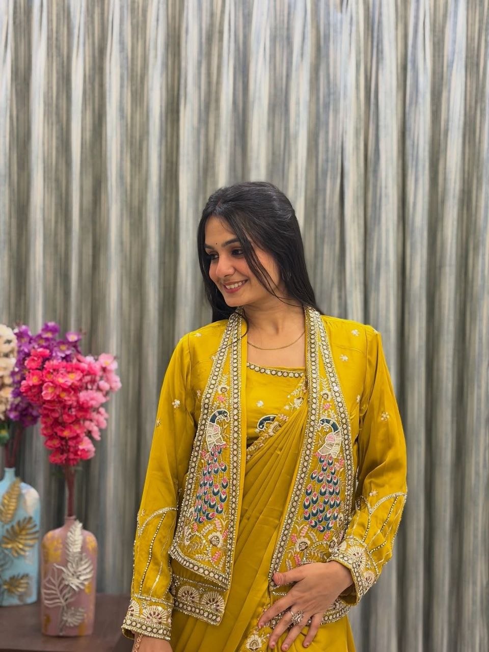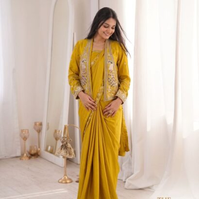 New Super Trending Party Jacket With Saree Reday To Wear Embroidery Work Saree