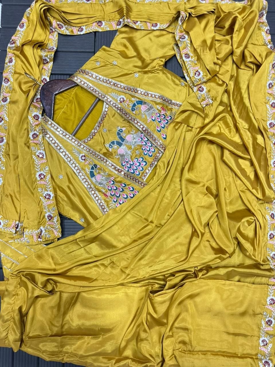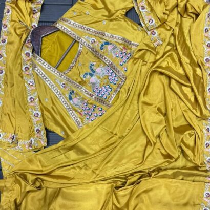 Saree: Heavy Crepe Satin With Embroidery Work