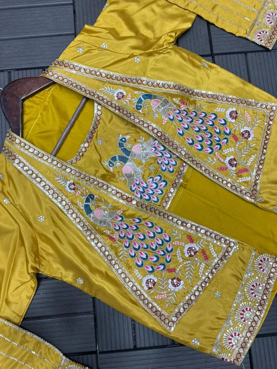 Koti: Heavy Crepe Satin With Embroidery Work, Fully Stitched, Free Size