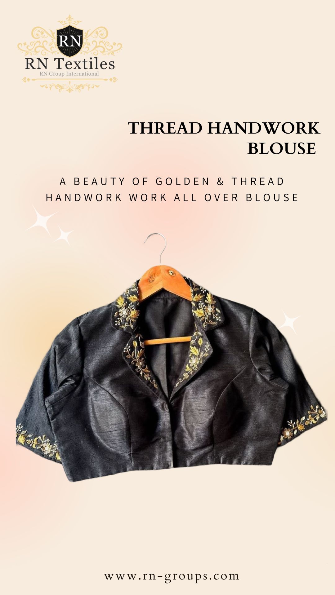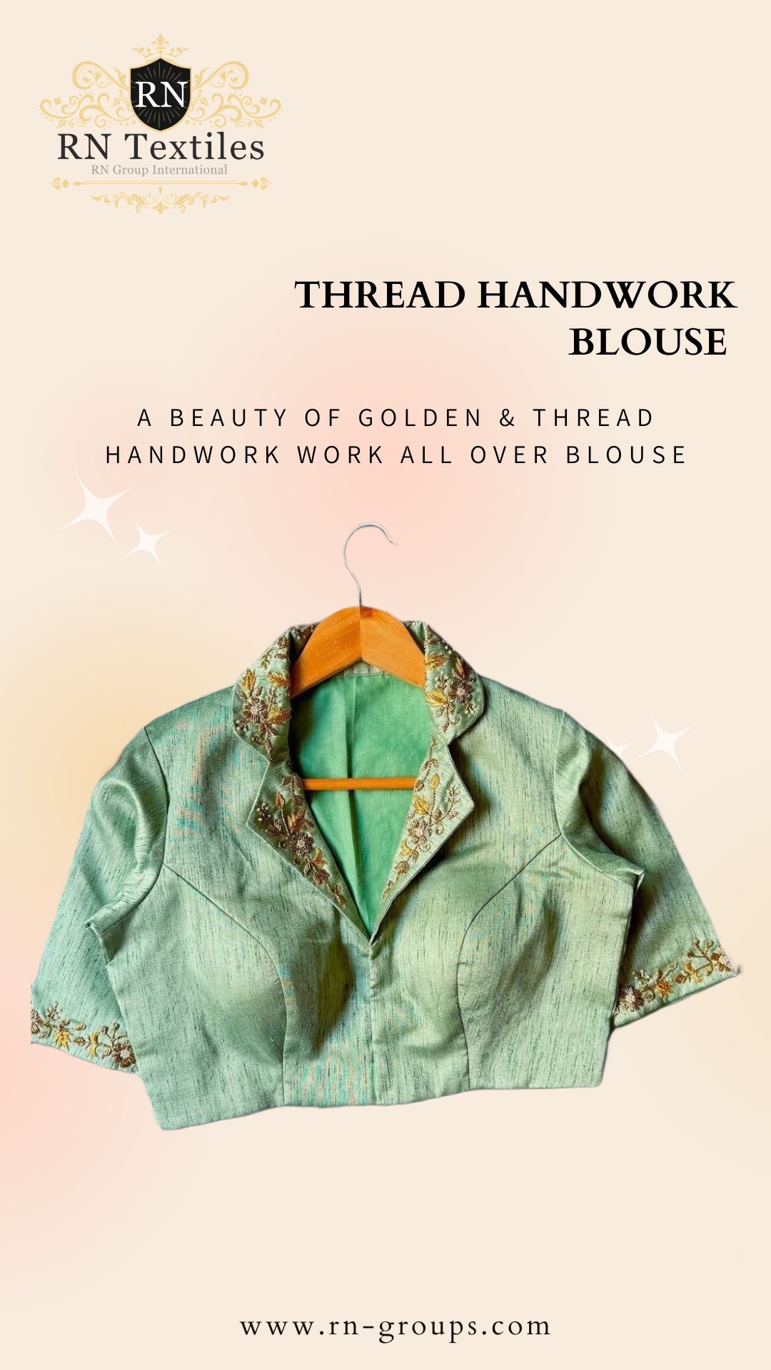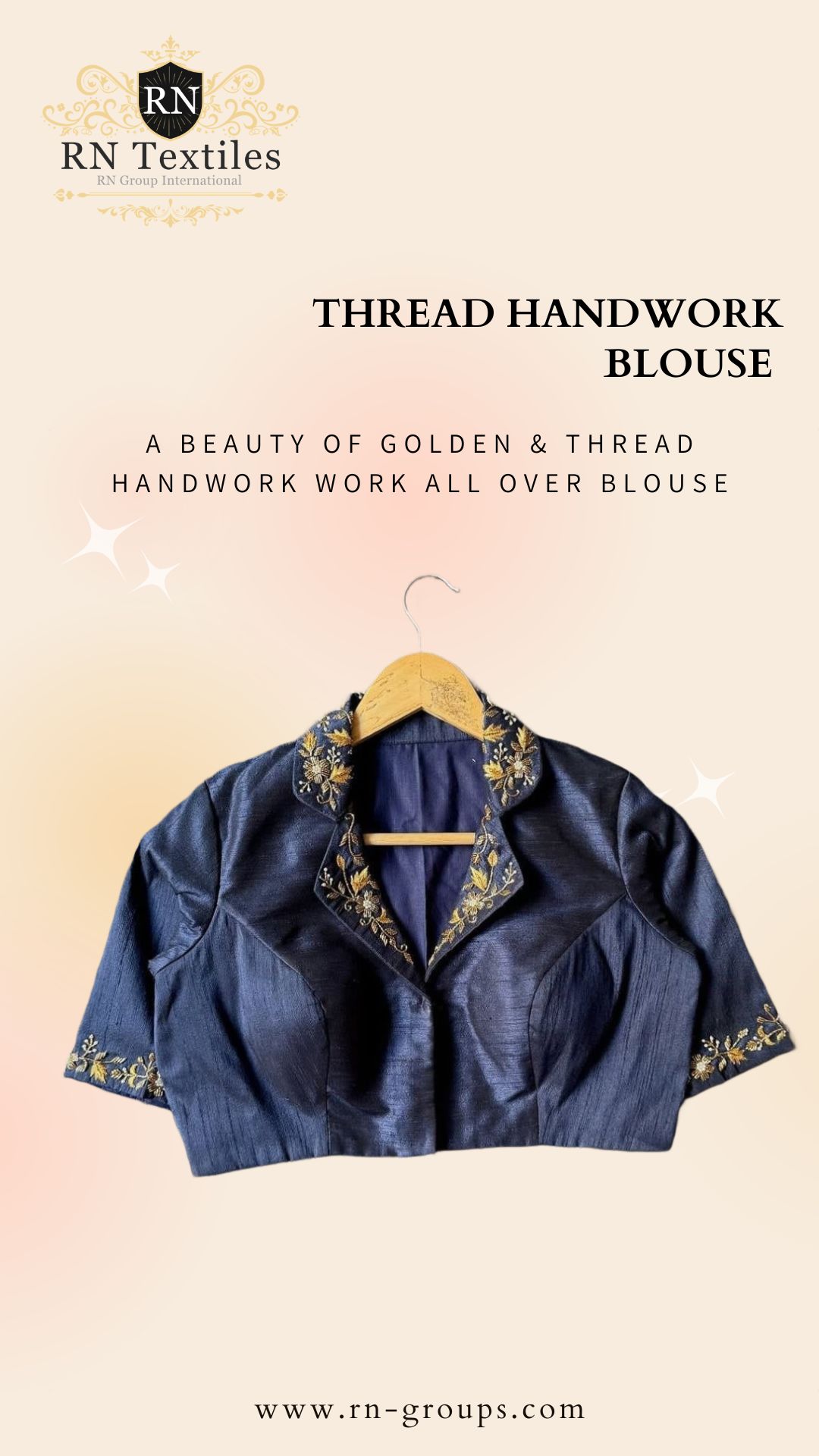 A Beauty Of Golden & Thread Handwork Work All Over Blouse