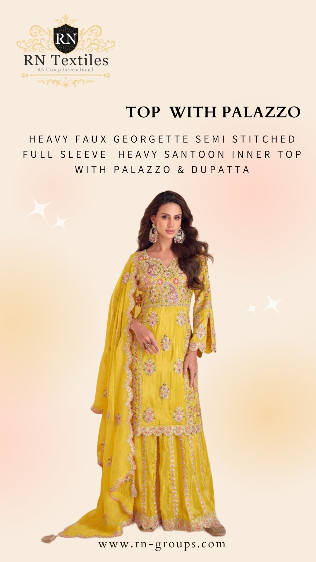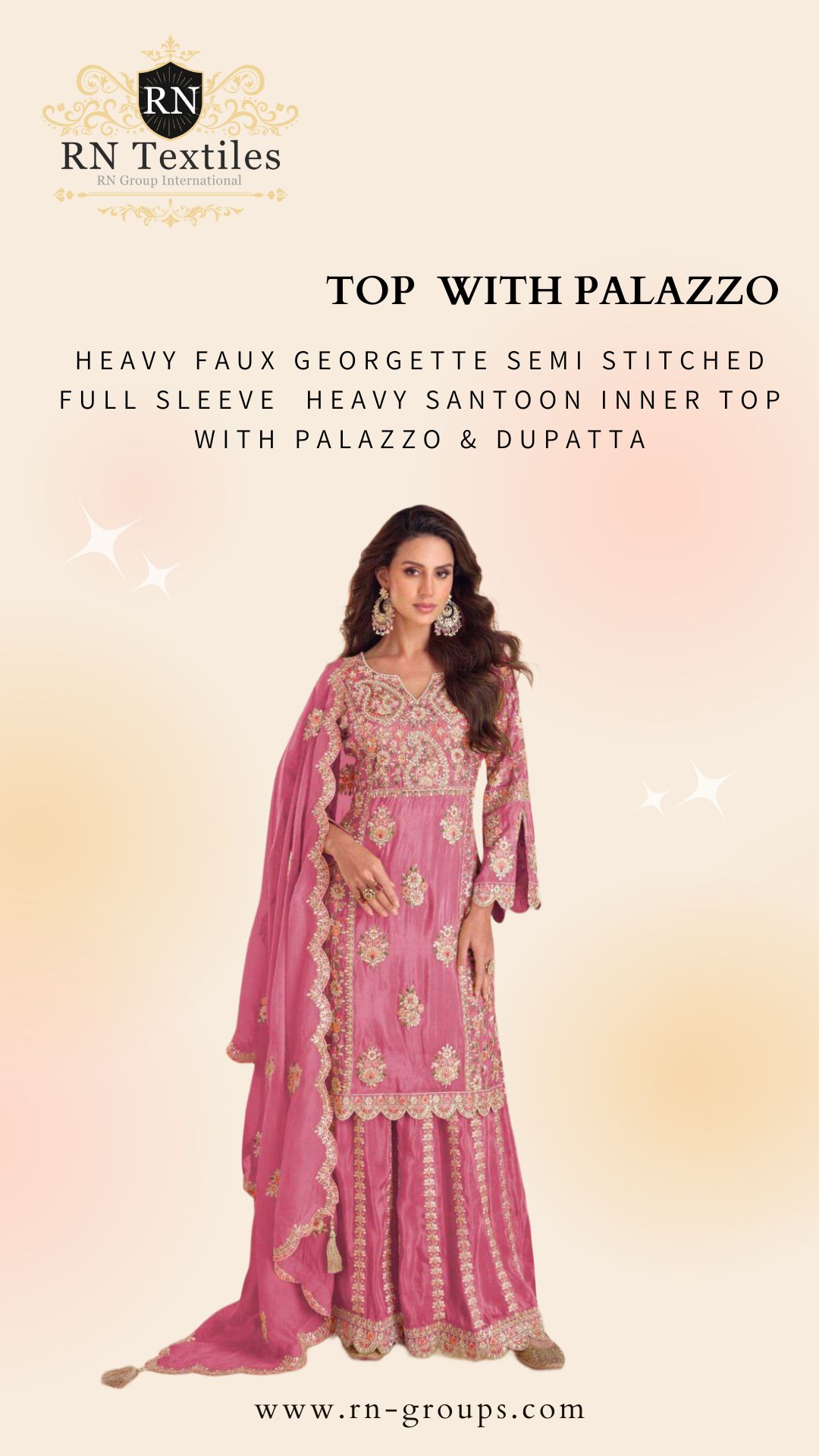 Fabric Details : Real Simar Embroidery Sequence Work Hand Work Santoon Silk Inner Top With Palazzo & Dupatta