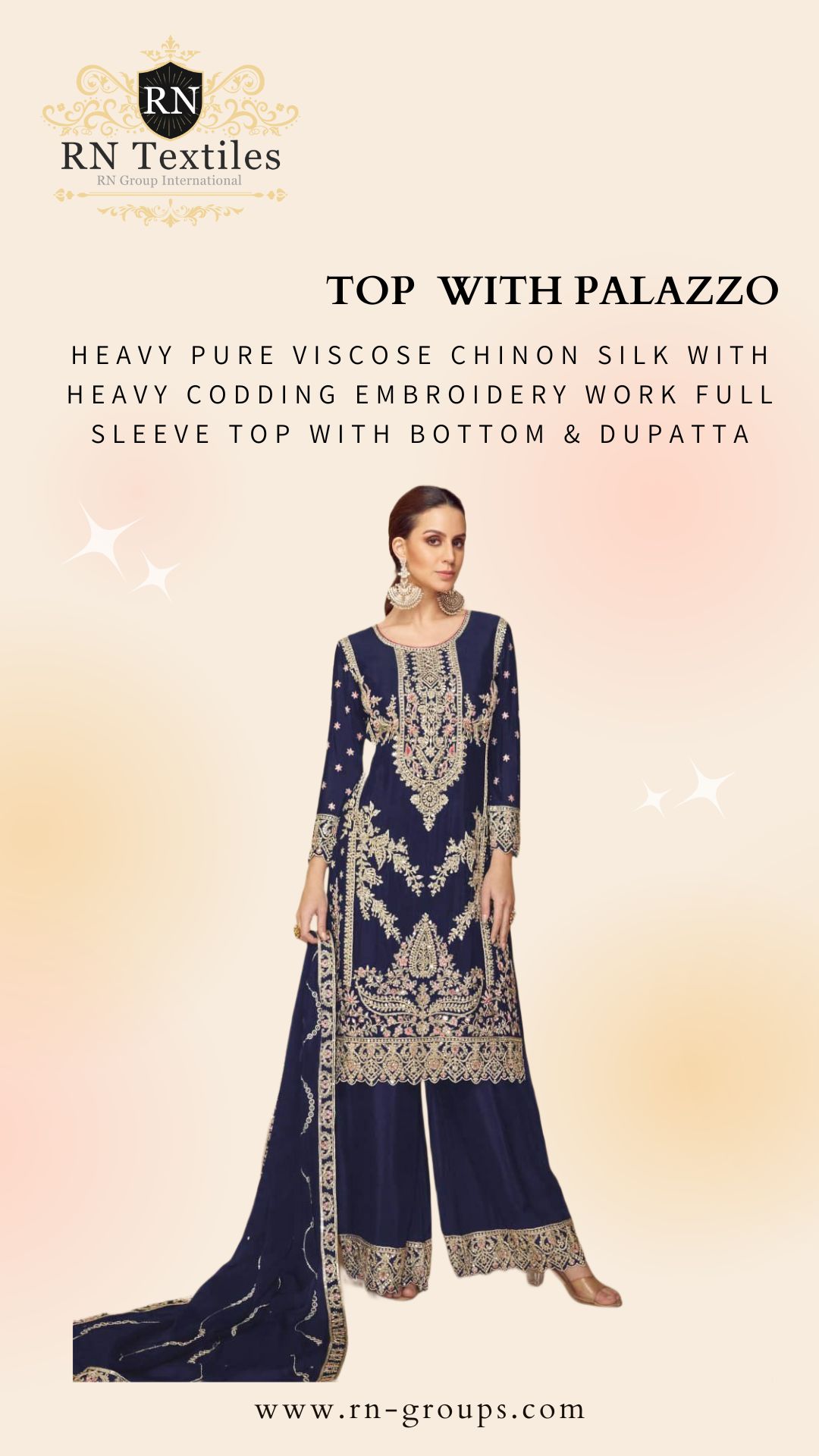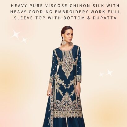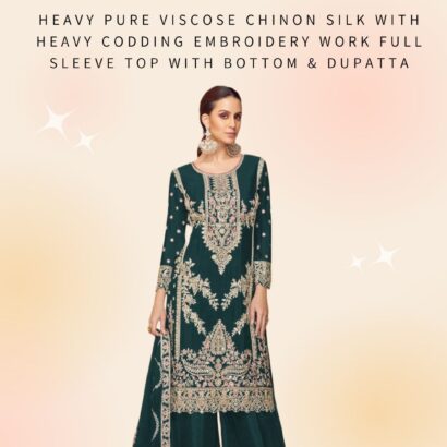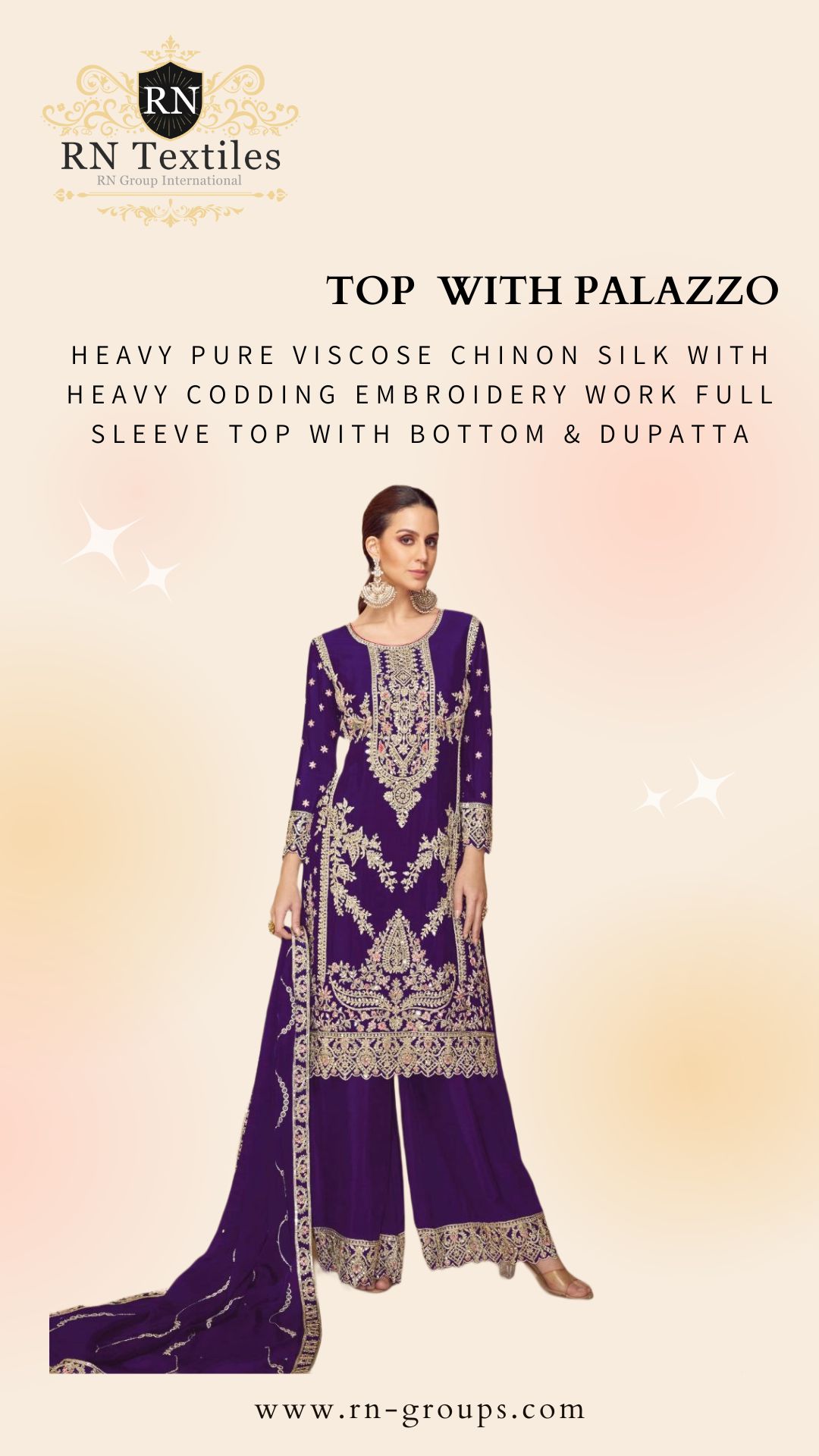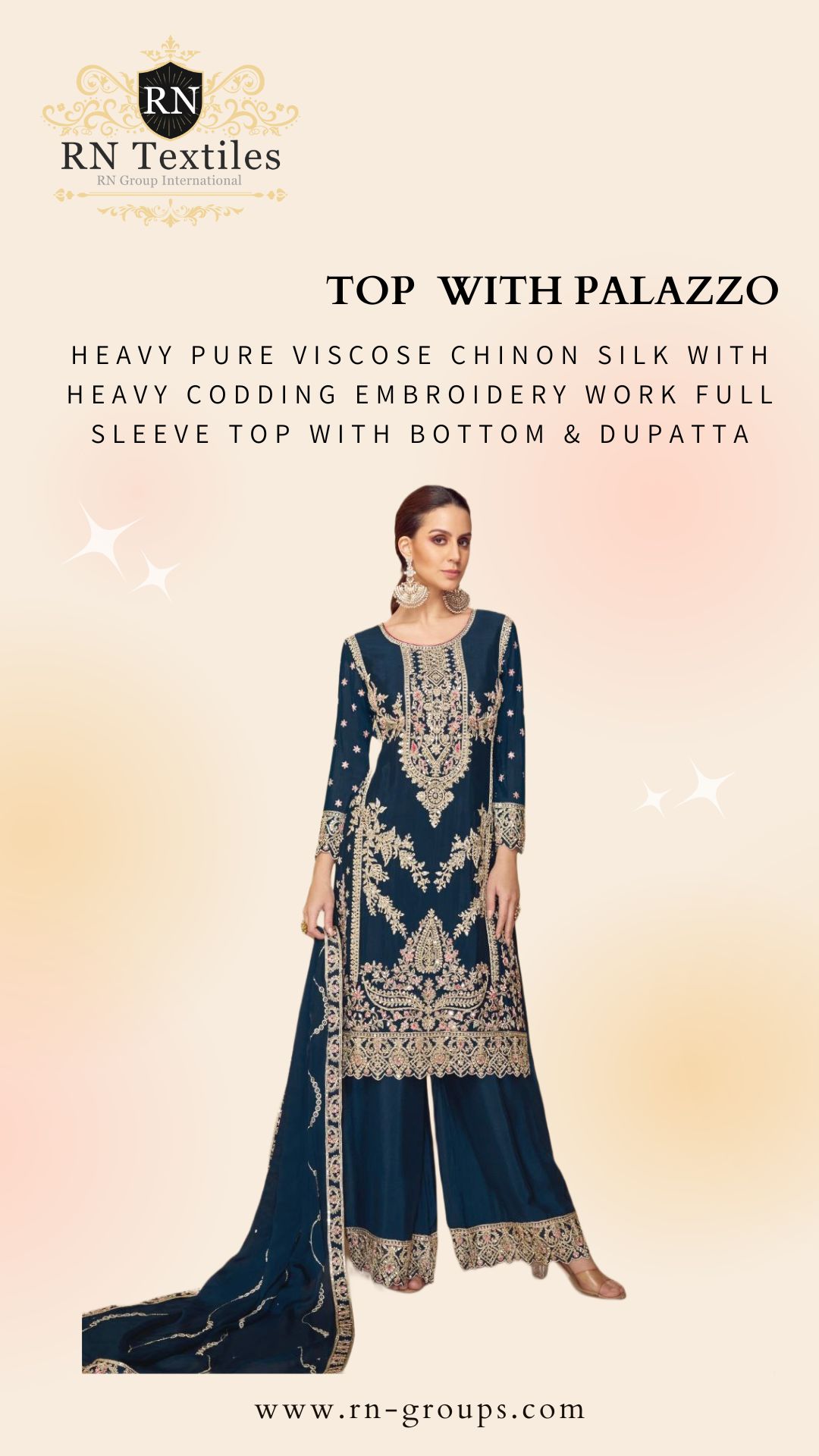 Fabrics Details : Heavy Pure Viscose Chinon Silk With Heavy Codding Embroidery Work Full Sleeve Top With Heavy Dull Micro Crepe Bottom & Pure Viscose Chinon Silk Dupatta