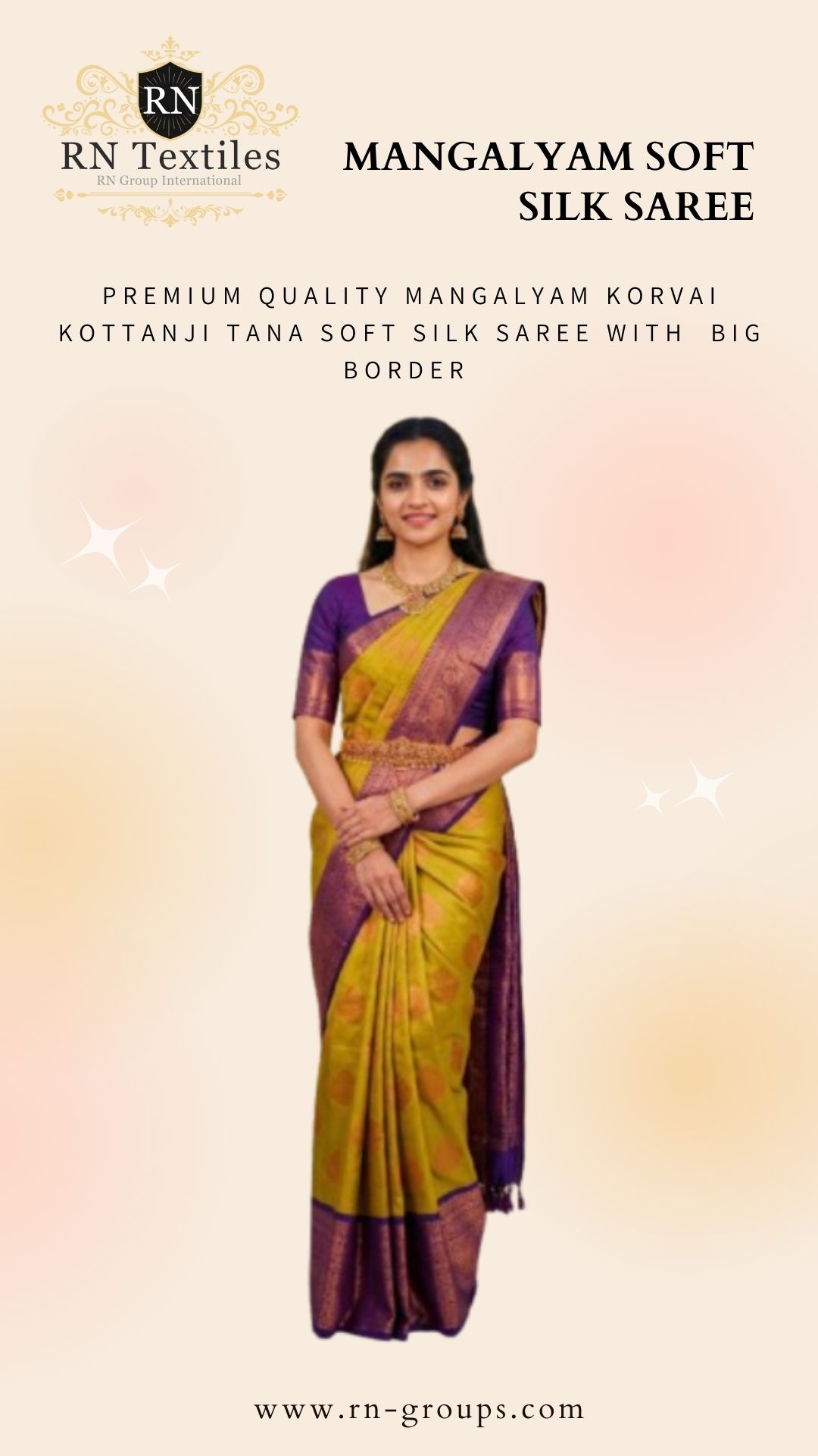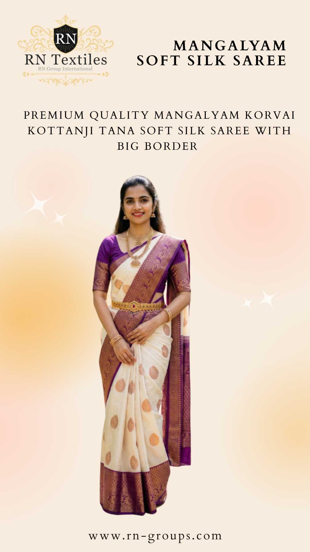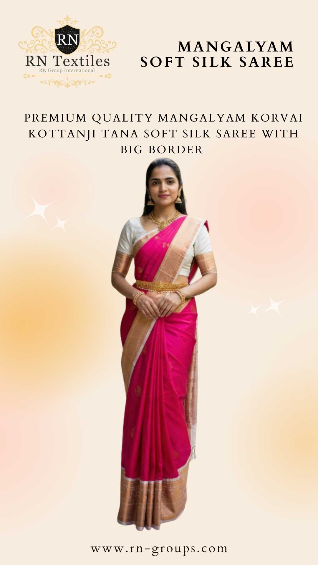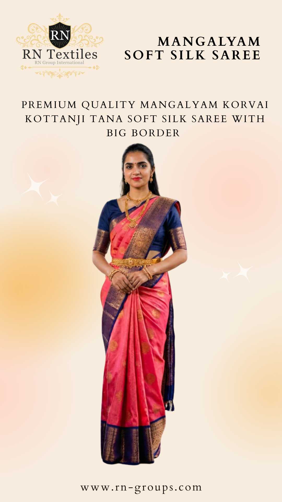 Premium Quality Mangalyam Korvai Kottanji Tana Soft Silk Saree with Big Border And Contrast Colour Border