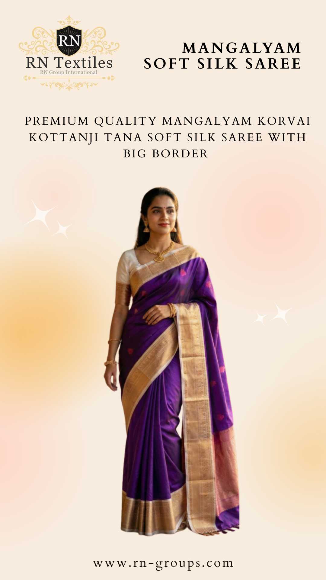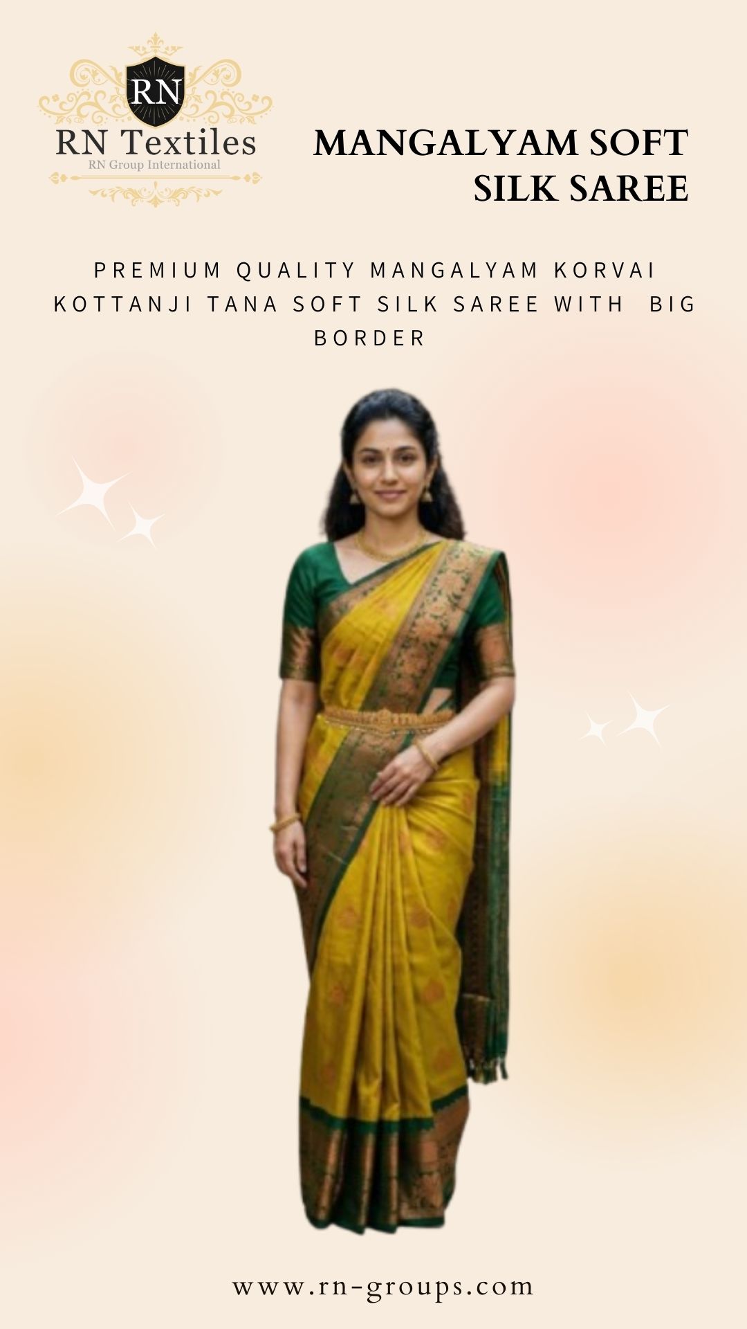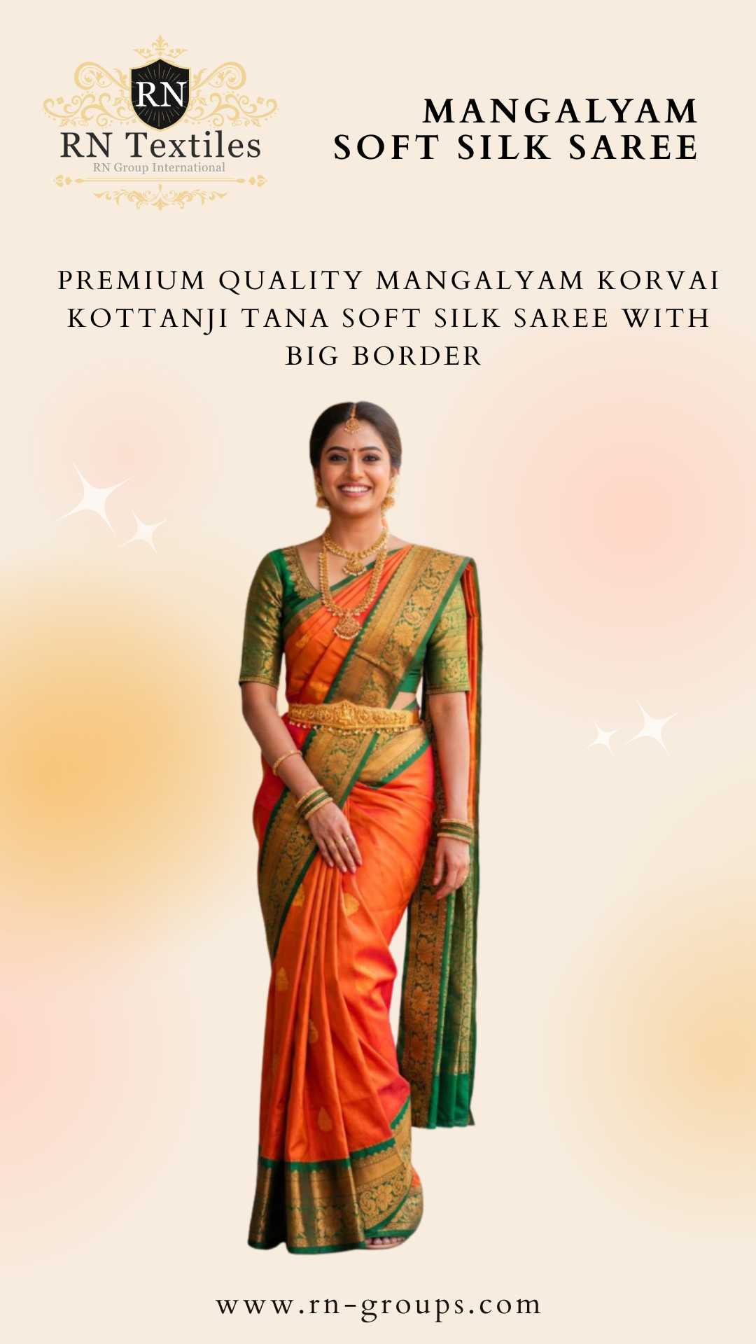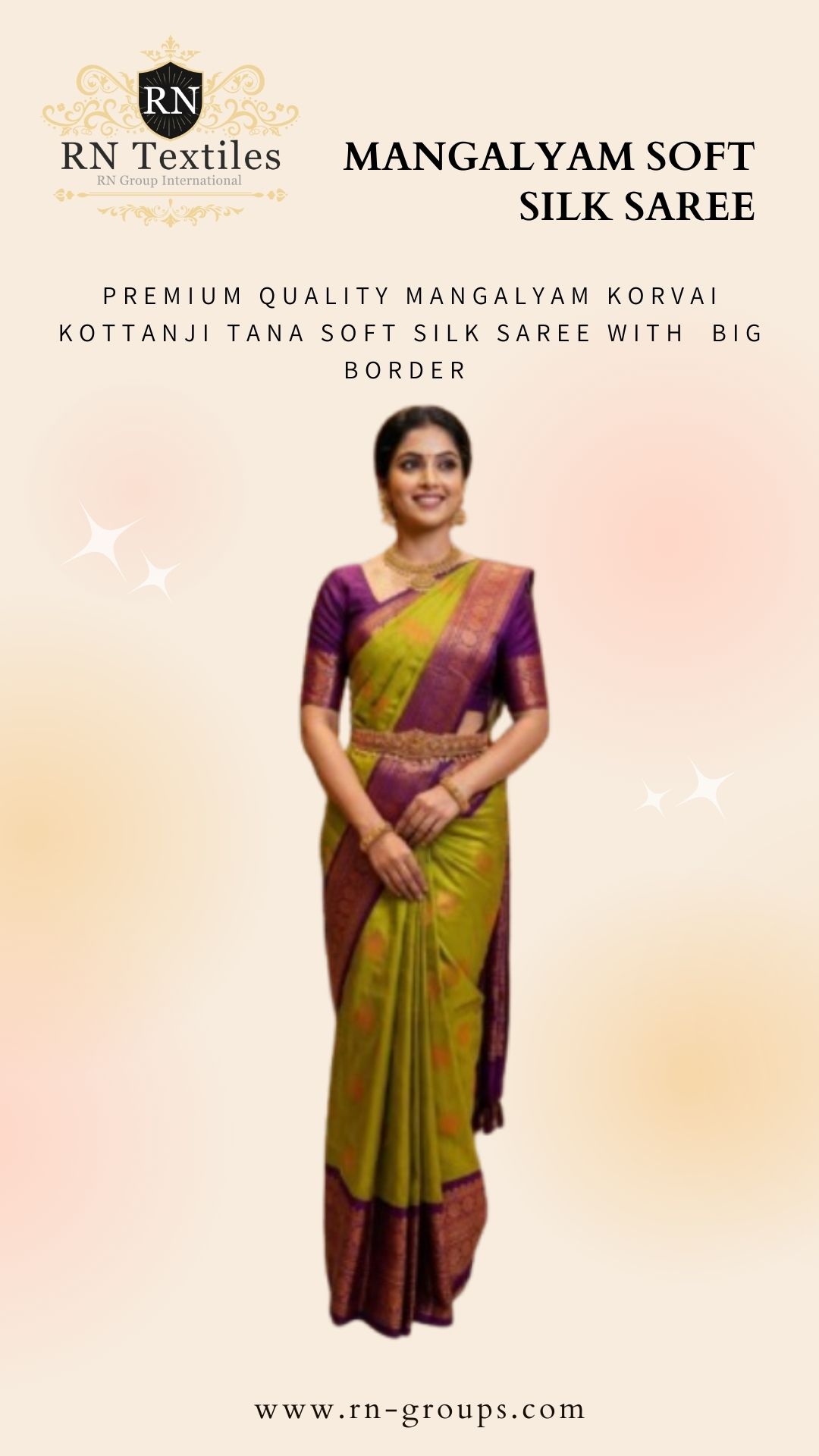 Premium Quality Mangalyam Korvai Kottanji Tana Soft Silk Saree with Big Border And Contrast Colour Border
